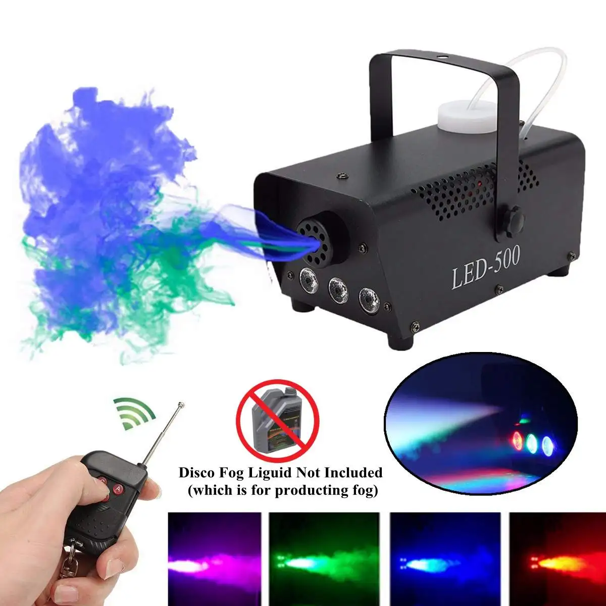 Миниатюрная светодиодная RGB Беспроводная туманная дымовая машина, 500 Вт, Эффект диско-Джея вечерние НКА на Рождество с дистанционным управлением, светодиодный дымовой генератор, европейская вилка
