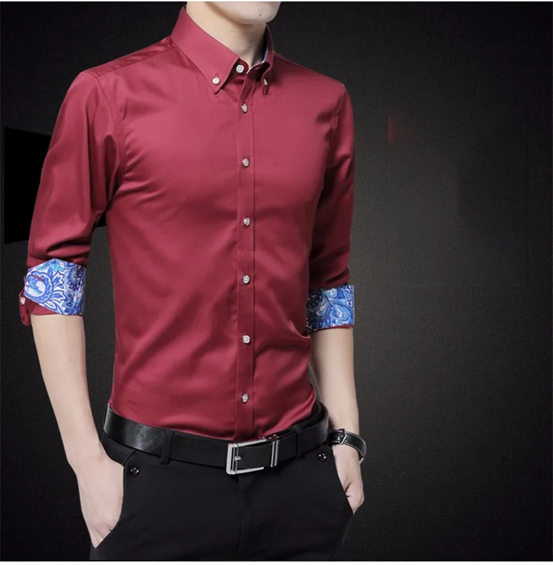 Мужская рубашка с длинным рукавом и отложным воротником, размеры до 5XL