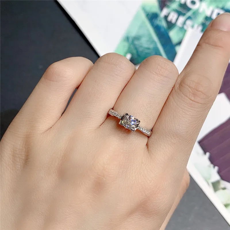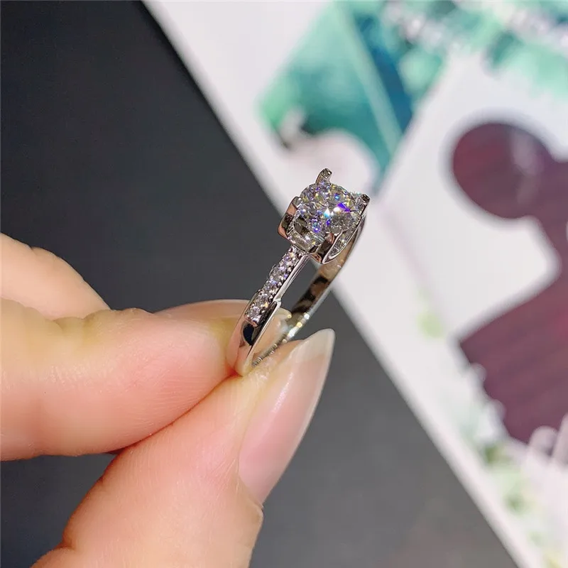 Кольцо женское из серебра 925 пробы с муассанитом 1-2 карата D, VVS1