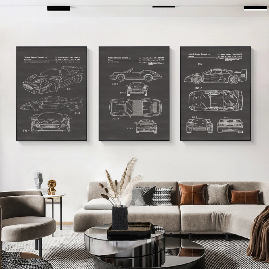 Минимализм черно-белый ретро промышленный ветряной автомобиль модификация структура рисунок декоративная живопись постер украшение дома