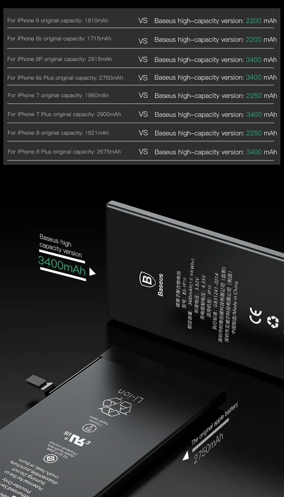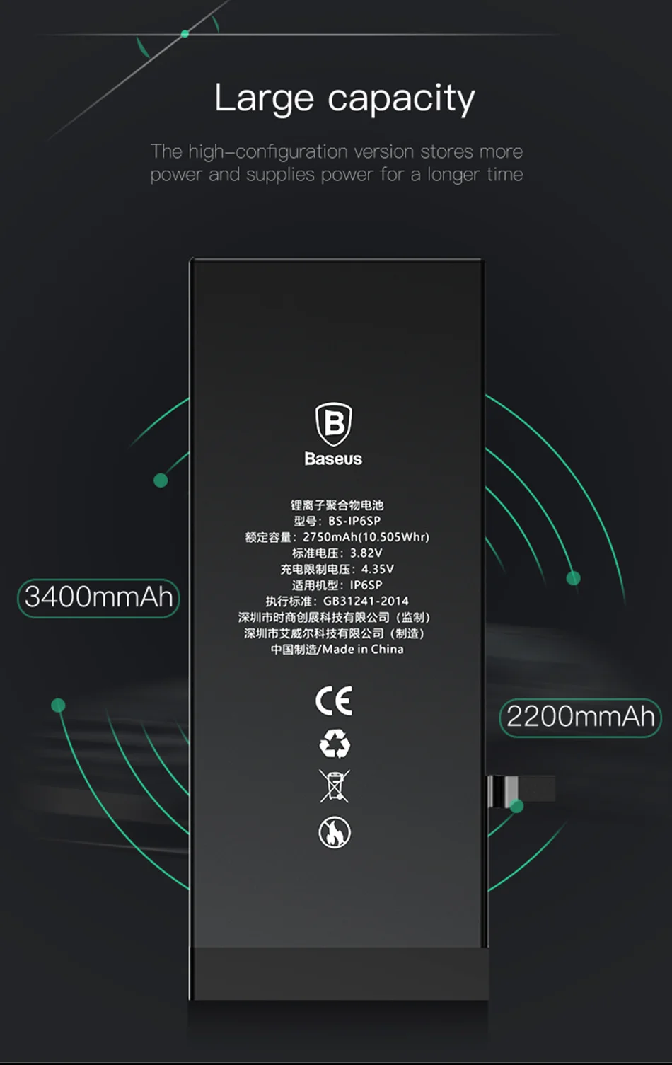 Capacity 3High Capacity 3400mAh for iP6sPlus