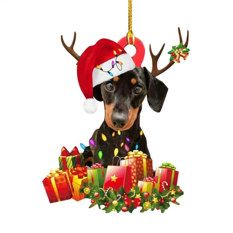 Рождественская подвеска, деревянная подвеска в виде собаки, украшен...
