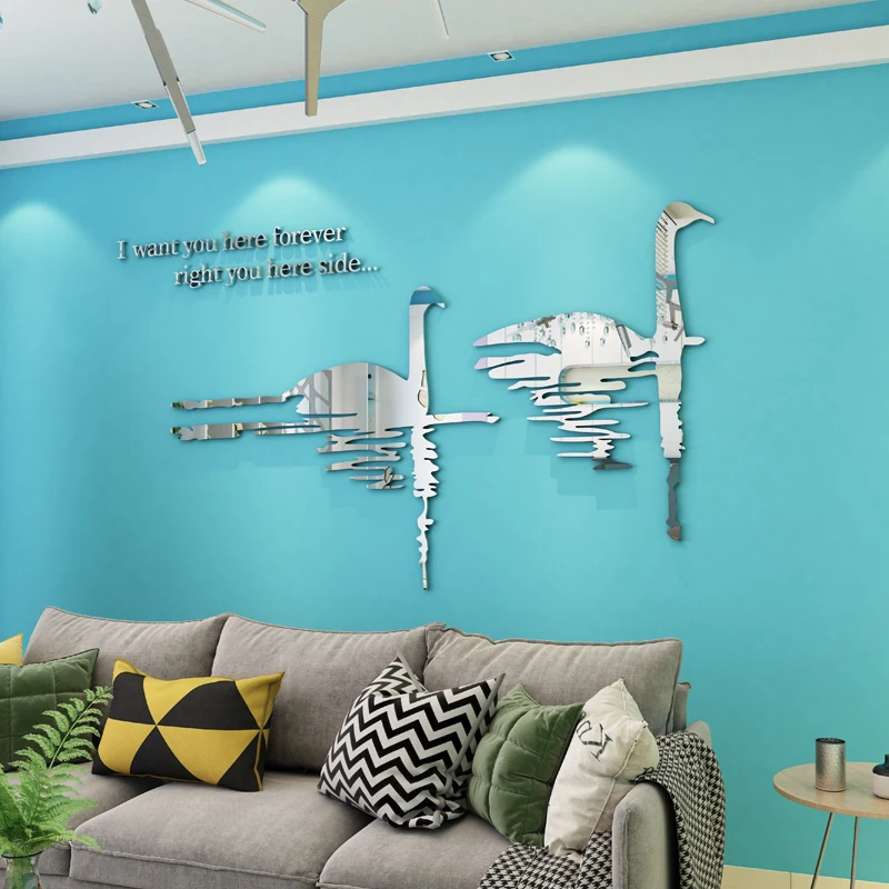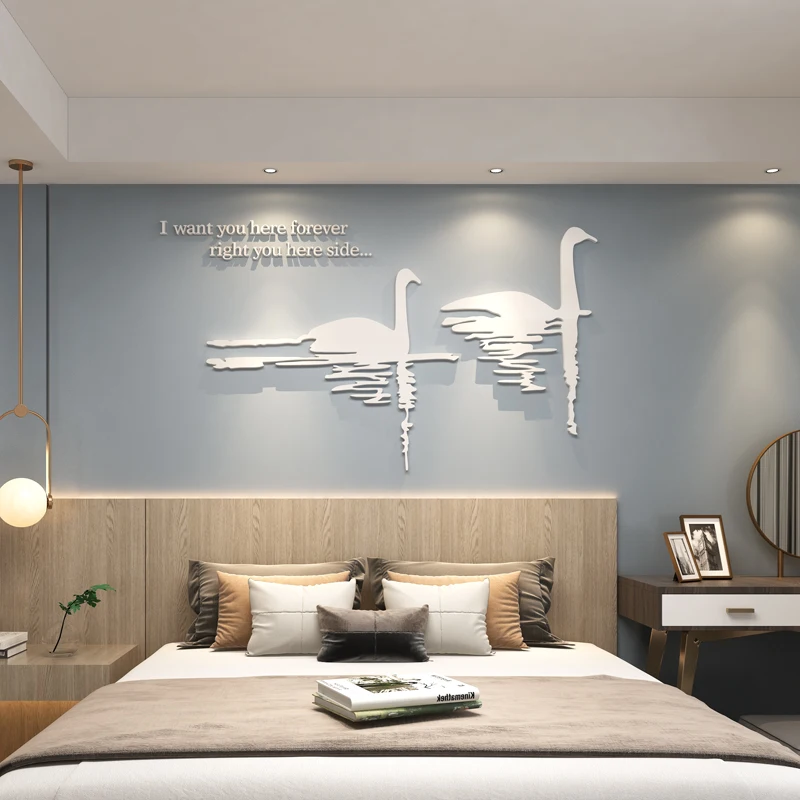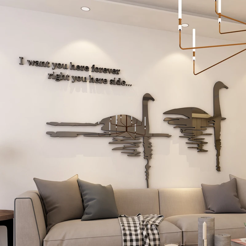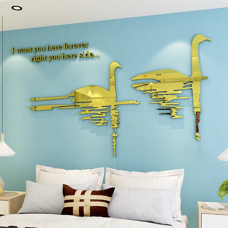 Влюбленный лебедь, акриловые зеркальные наклейки на стену, домашний декор, украшение на стену для свадебной комнаты, наклейки на стену для телевизора, сделай сам, толщина 2 мм