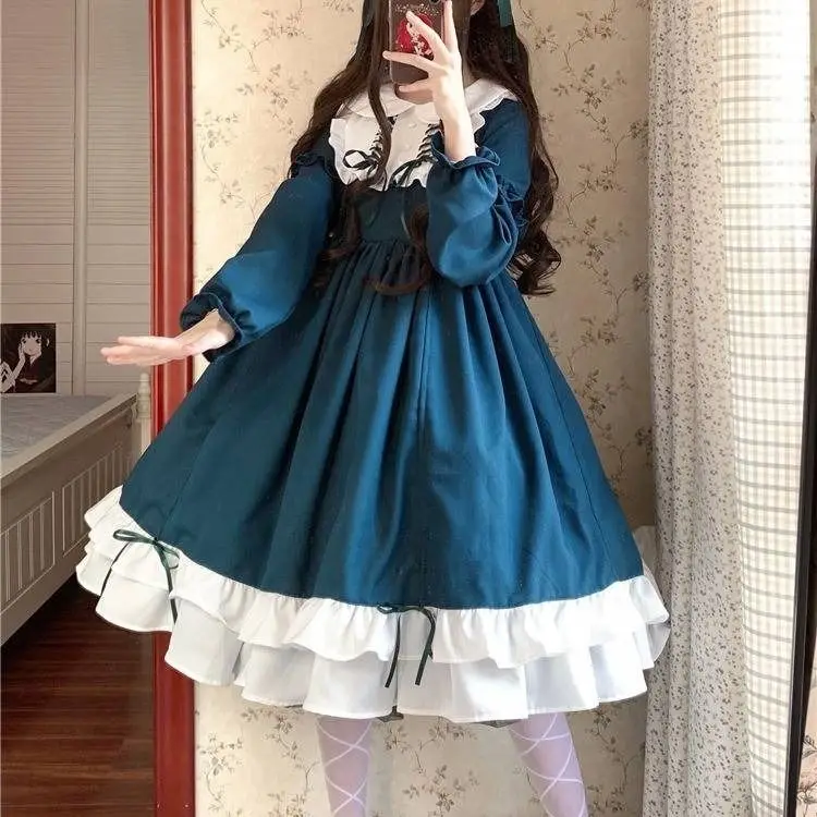 Новинка Осень 2021, японское милое платье принцессы для девочки, модный костюм для отдыха в стиле кавайная лолитвечерние, костюм на Хэллоуин с длинными рукавами
