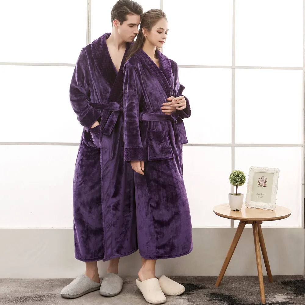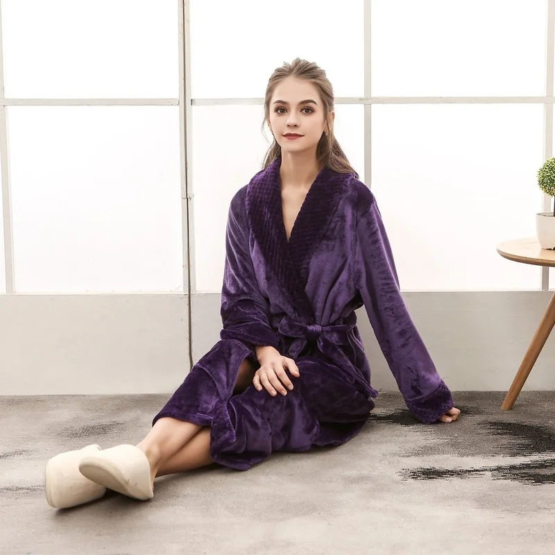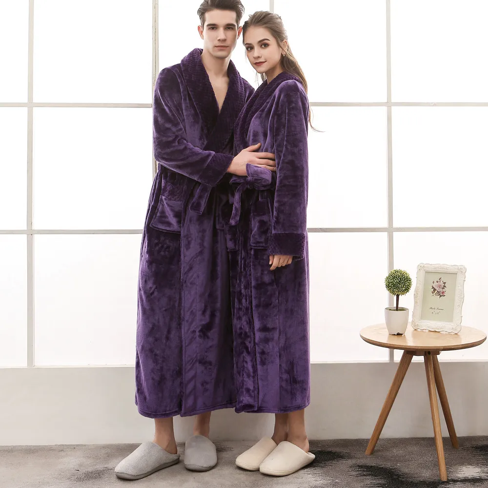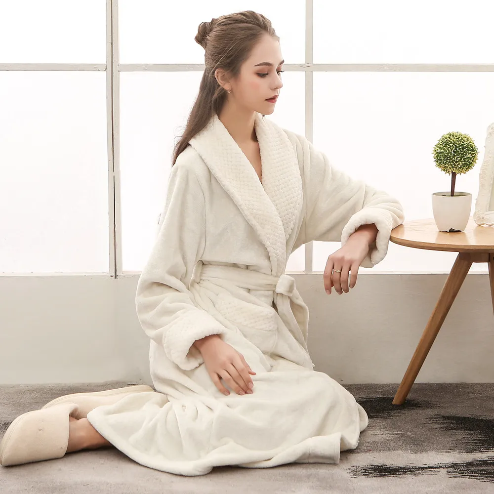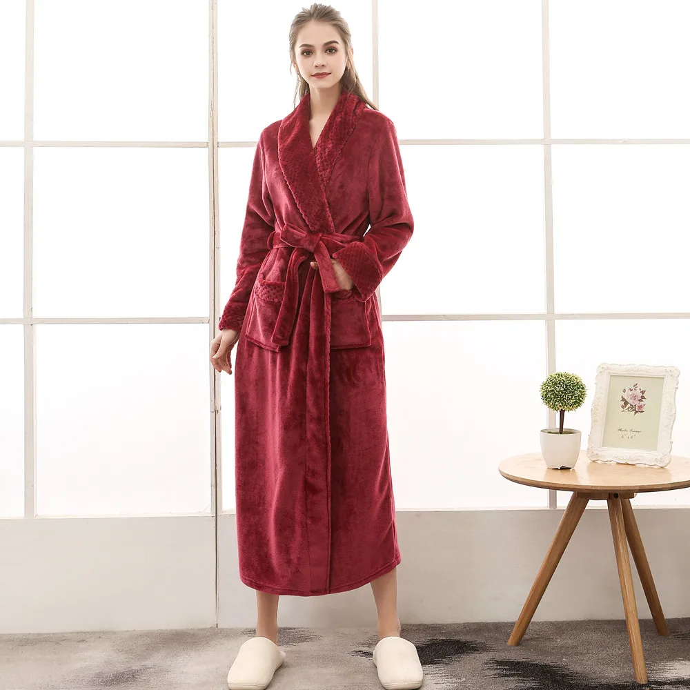 Женский фланелевый Халат с длинным рукавом, удлиненный банный халат из кораллового плюша