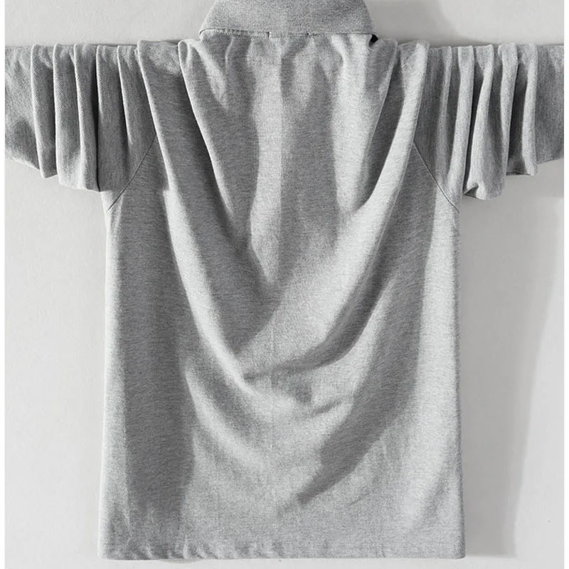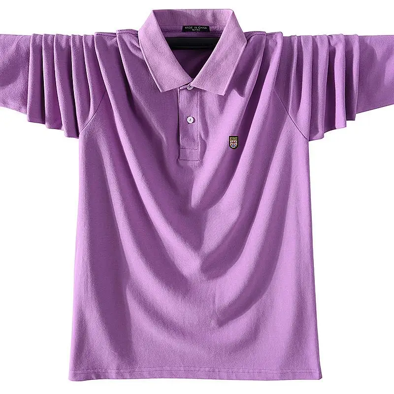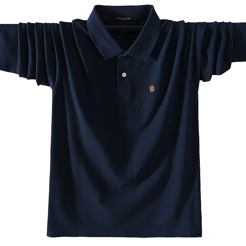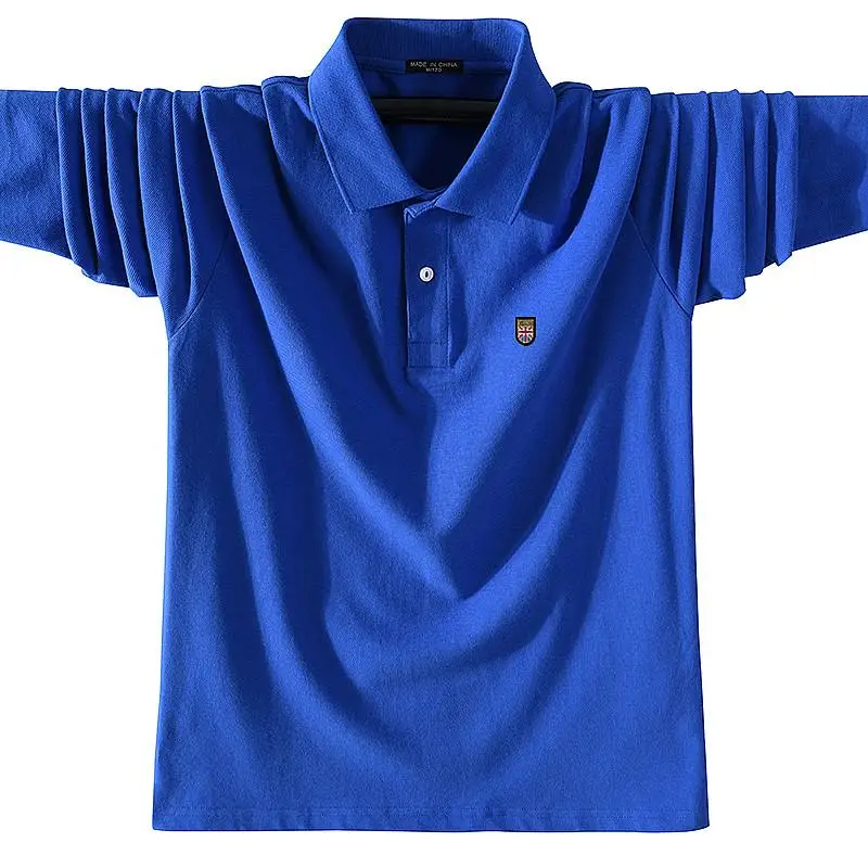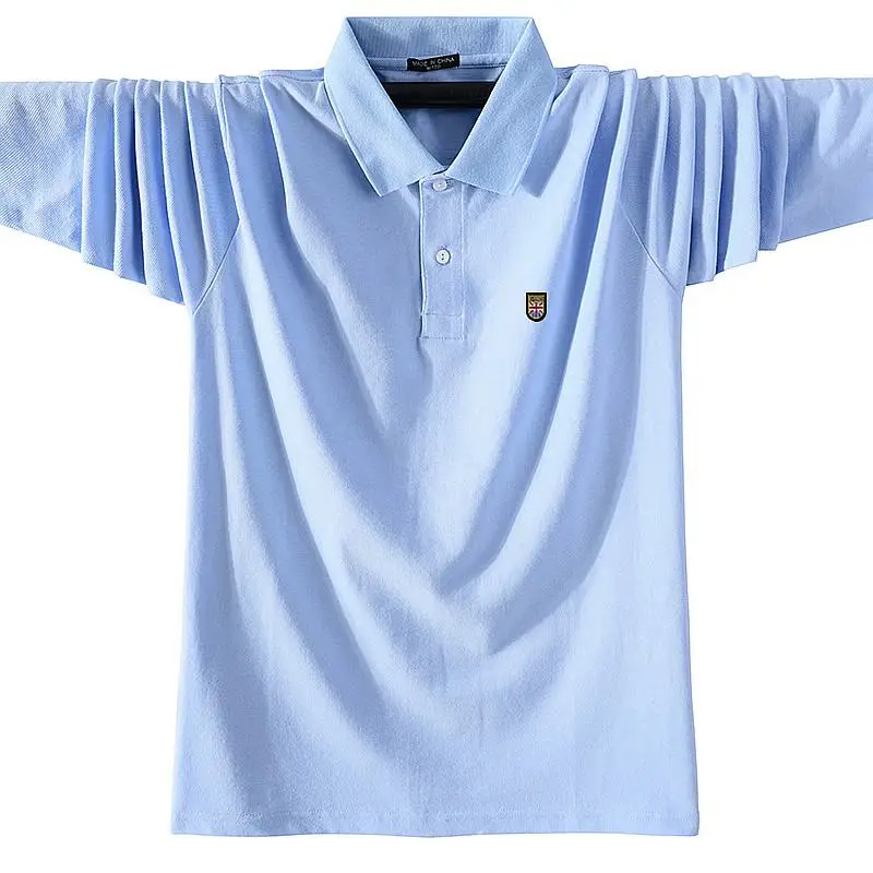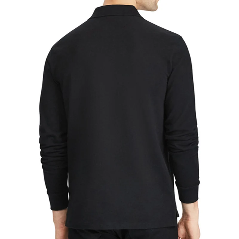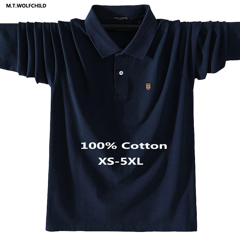 Мужская рубашка-поло из чистого хлопка, с длинным рукавом