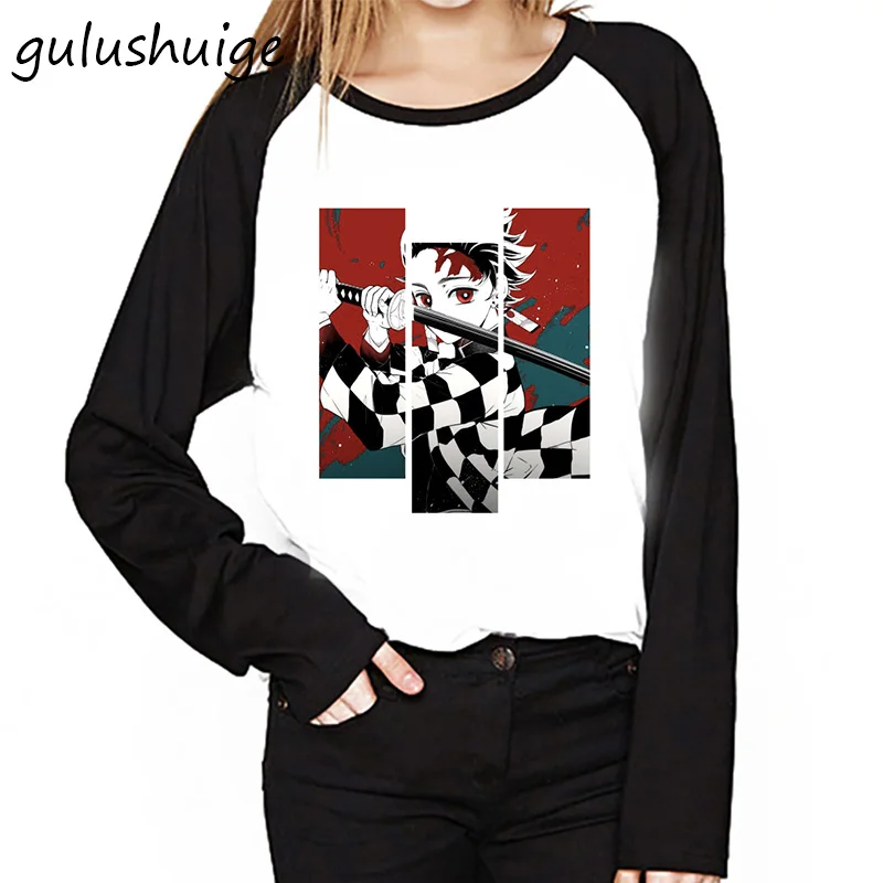 Футболка 90-х с японским аниме рассекающий демонов, футболка Tanjirou Kamado, рубашка с длинным рукавом, футболка Kimetsu No Yaiba Nezuko, манга Rengoku