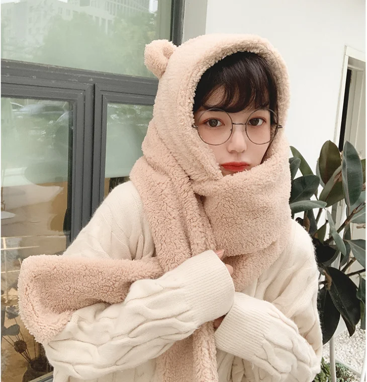 Медвежья шапка шарф все в одном Симпатичная зимняя двухслойная тепл...