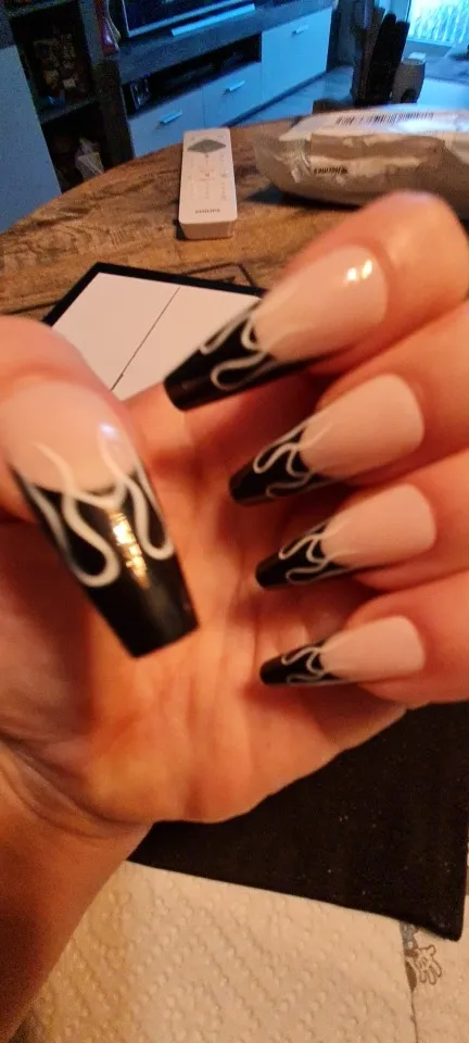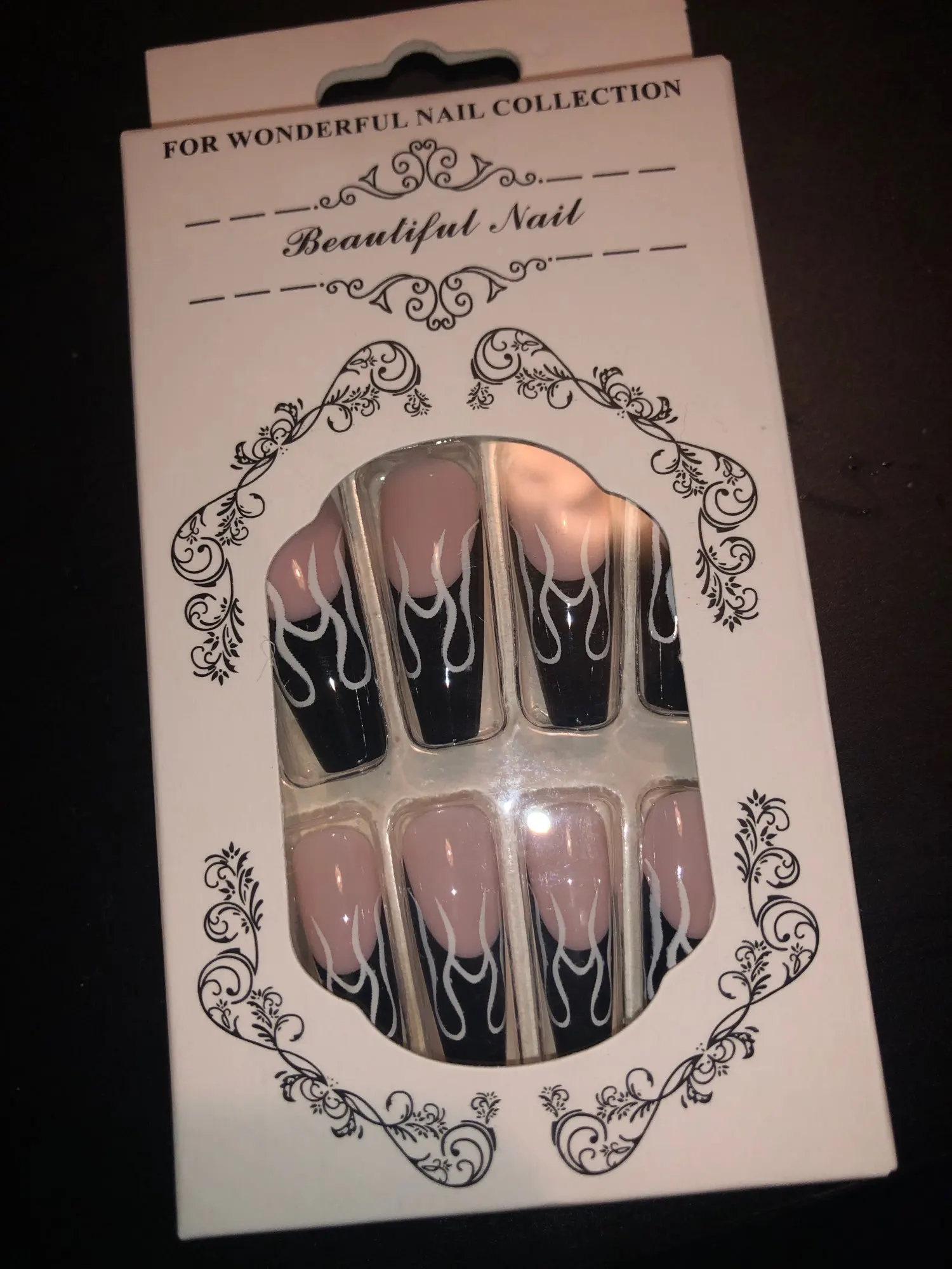 24 шт черные французские накладные ногти Экстра длинные огненные узоры гроб поддельные ногти с клеем ногти Сделай Сам искусственные балерины советы для дизайна ногтей
