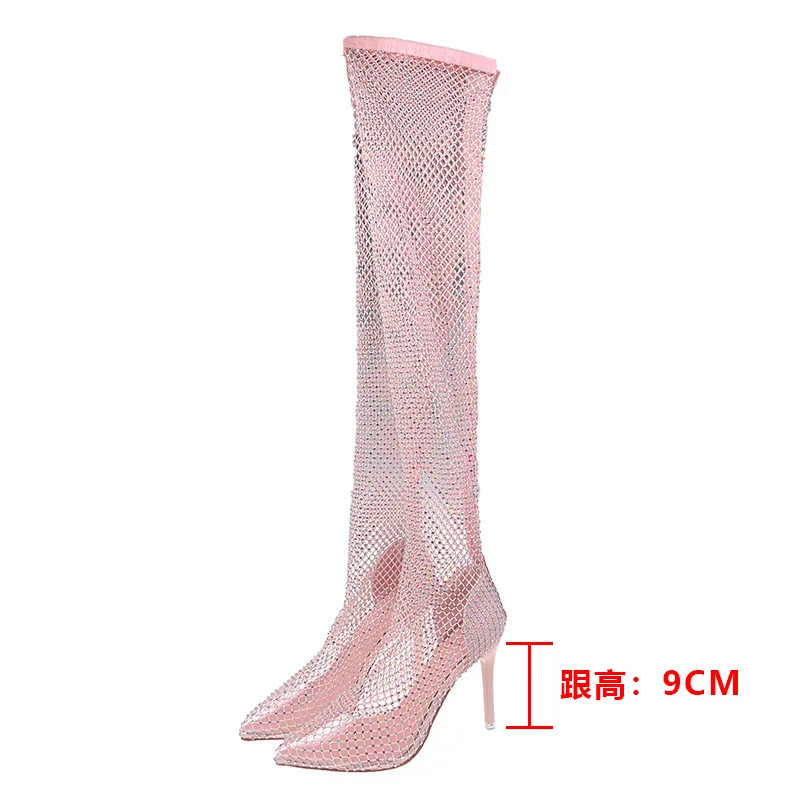Стразы Сетчатые эластичные сапоги выше колена высокие сапоги в сето...