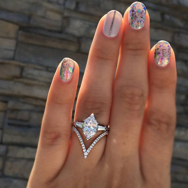 Трехцветные позолоченные кольца с белым Цирконом маркиза для женщин...