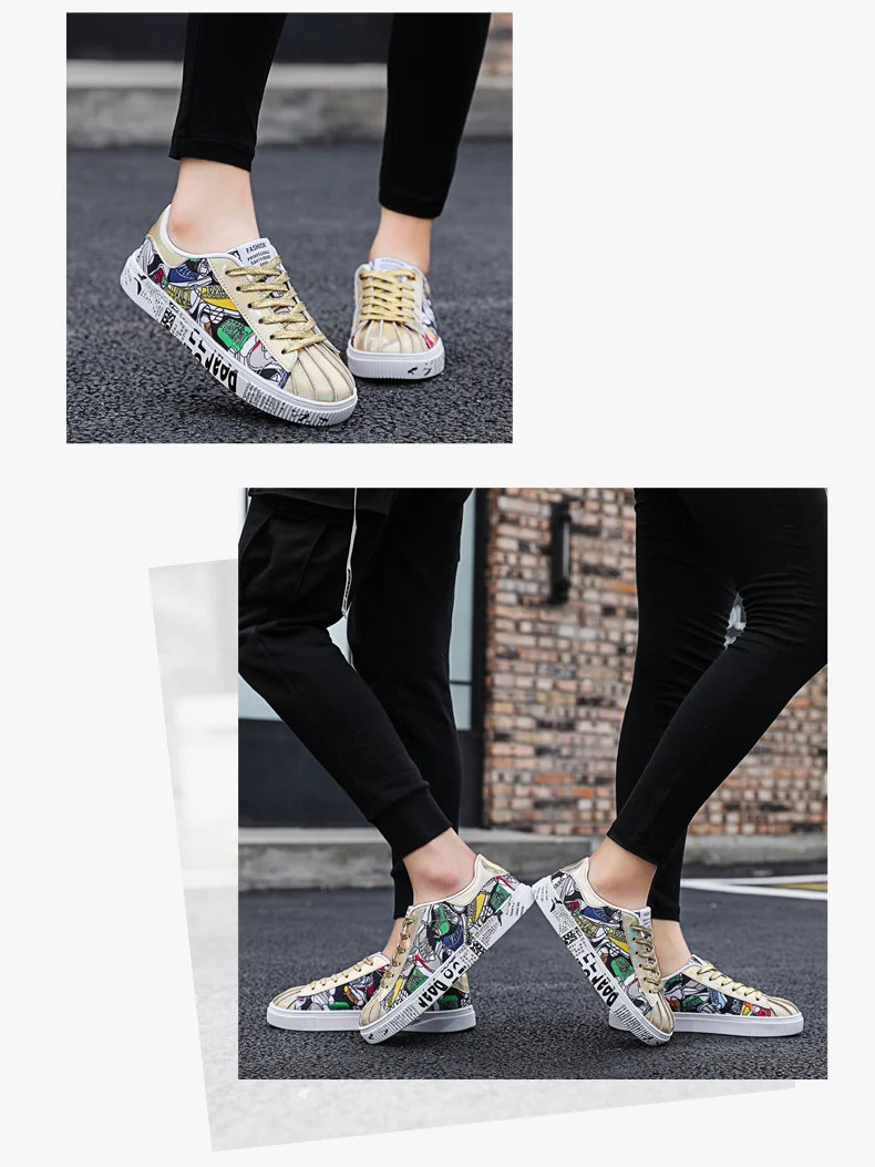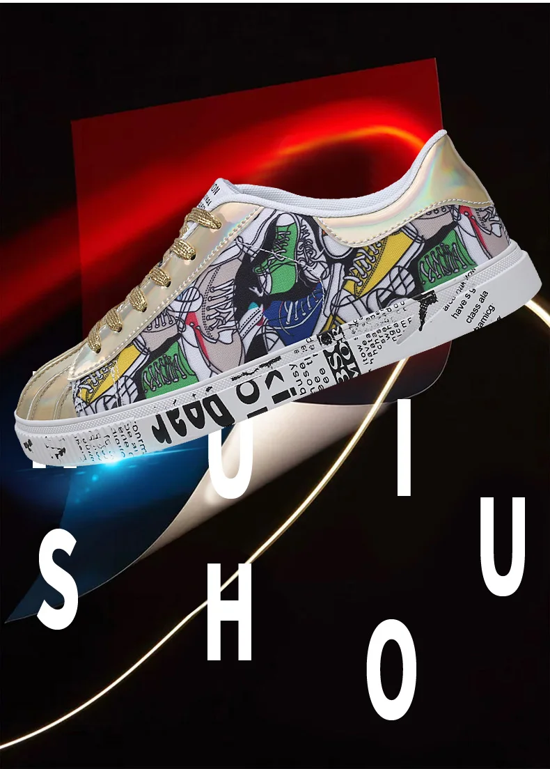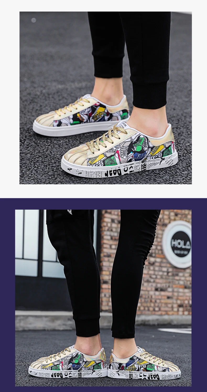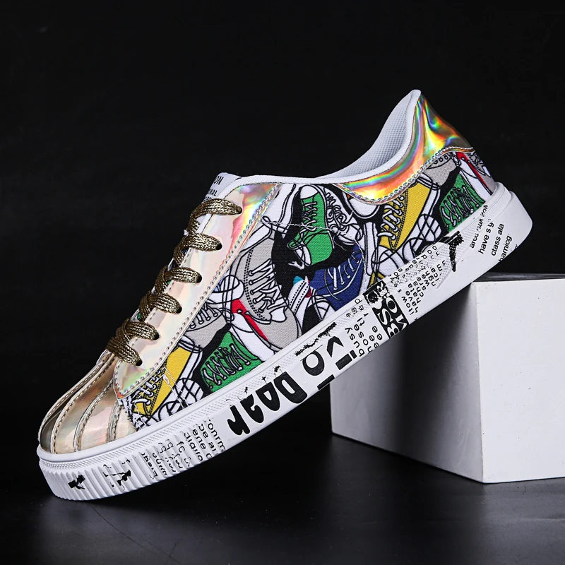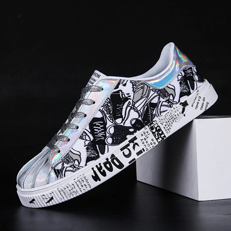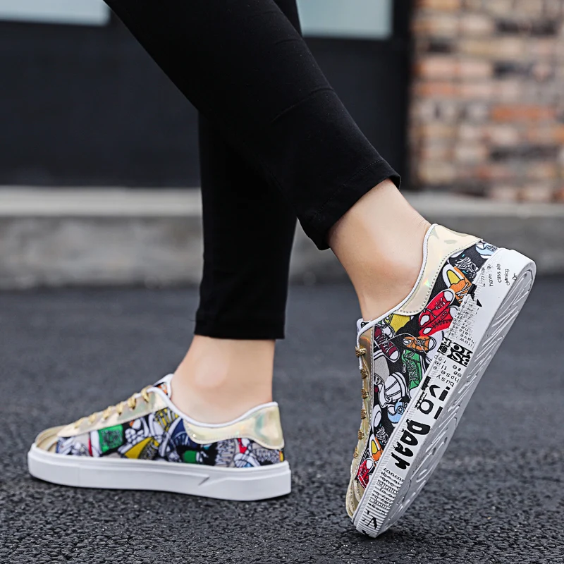 Новинка, модная обувь для пар, граффити, Ранняя обувь, блестящие зо...