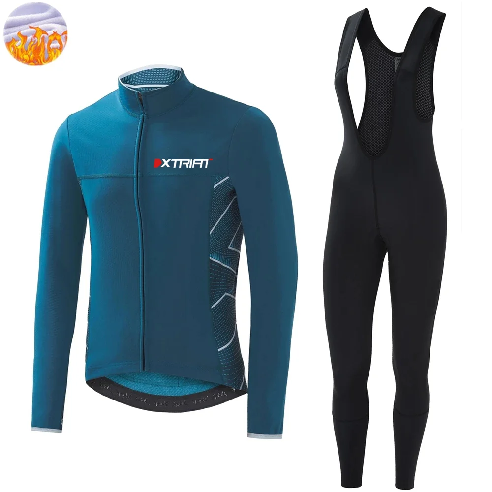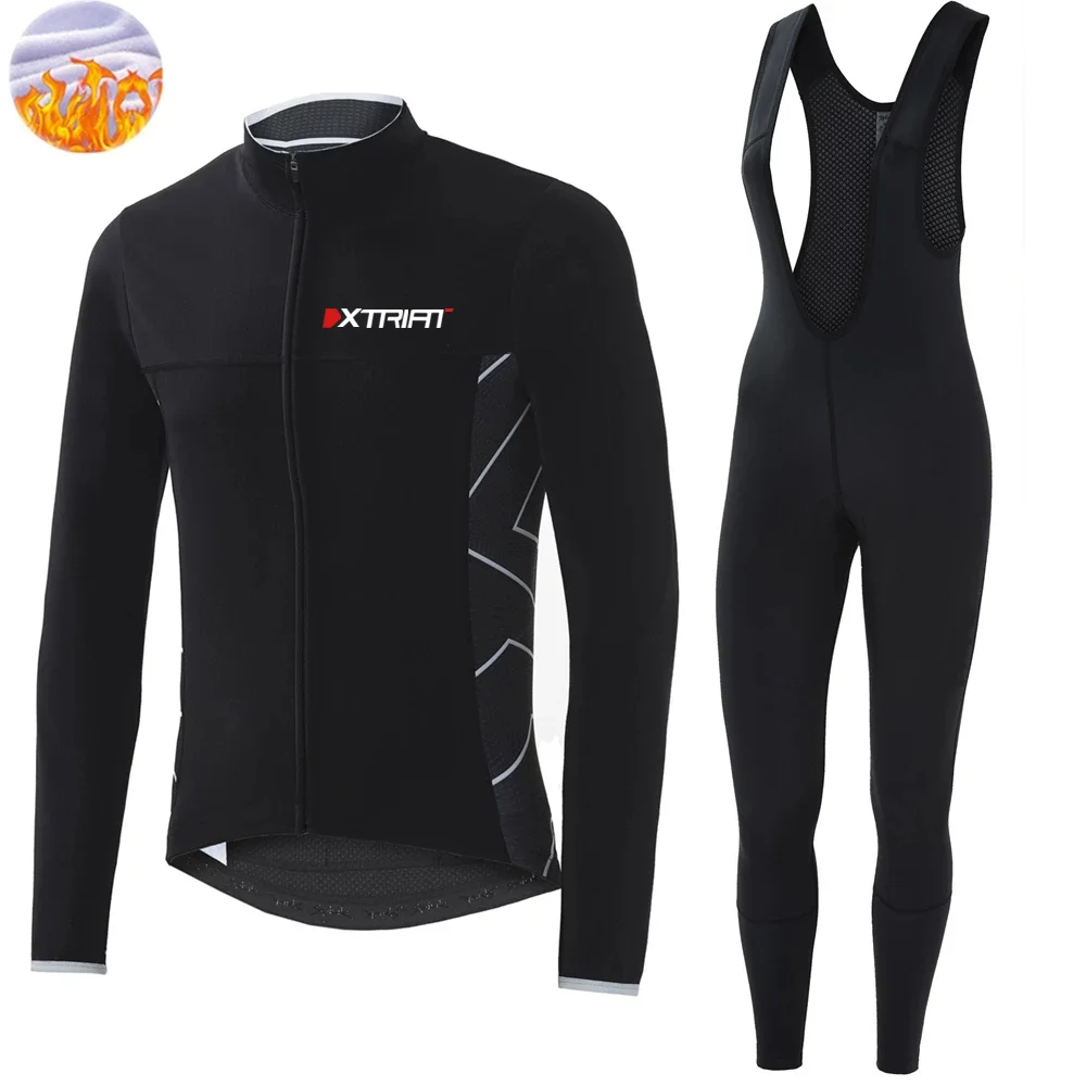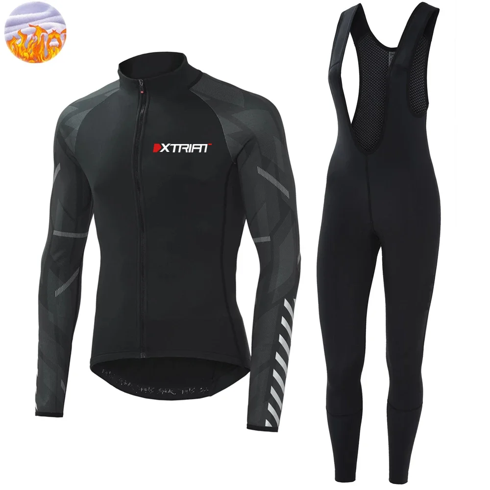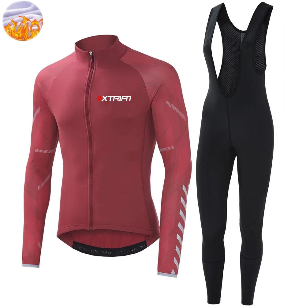 Мужская зимняя куртка XTRIAT, велосипедный комплект из Джерси, пальто с длинным рукавом и брюки с нагрудником, уличный костюм для горного велосипеда, Теплая Флисовая одежда для велоспорта, одежда для велоспорта