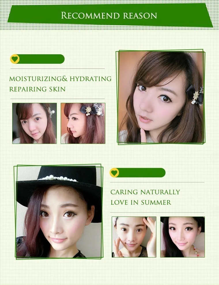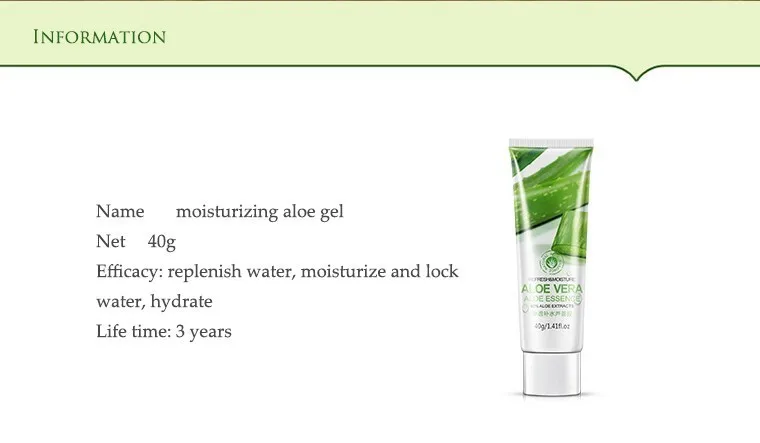 Эффективность:Алоэ Вера способствует более здоровой коже, обеспечивает увлажнение кожи. Эссенция алоэ способствует привлекательному, освежающему и здоровому внешнему виду, уменьшает внешний вид поврежденной кожи. Охладить и успокоить кожу после длительного воздействия солнца.