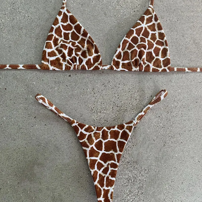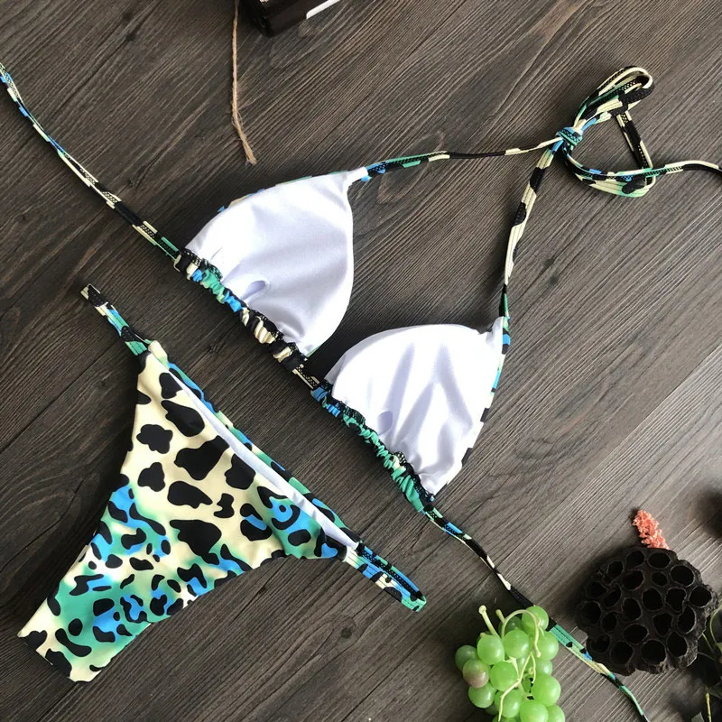 Купальник-бикини Rinabe женский с принтом, халтер, купальный костюм со шнуровкой, треугольный комплект бикини с чашками пуш-ап, пляжная одежда, 2022