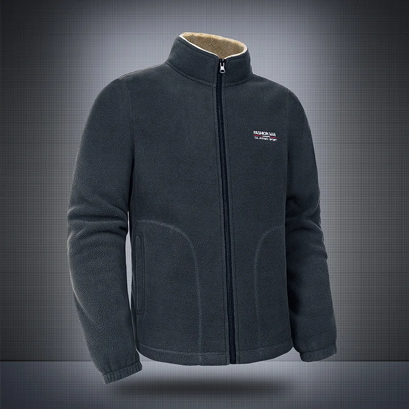 Мужская куртка с длинным рукавом, на флисе, с воротником-стойкой