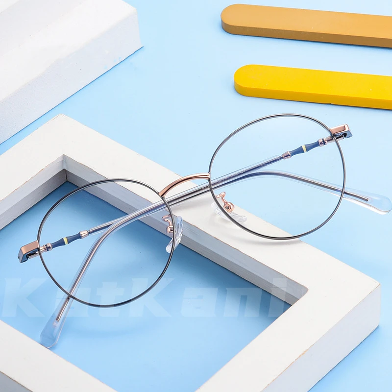 Круглая оправа для очков KatKani в стиле ретро для мужчин и женщин, украшенная ульсветильник оптической оправой из сплава для очков по рецепту 01-17879