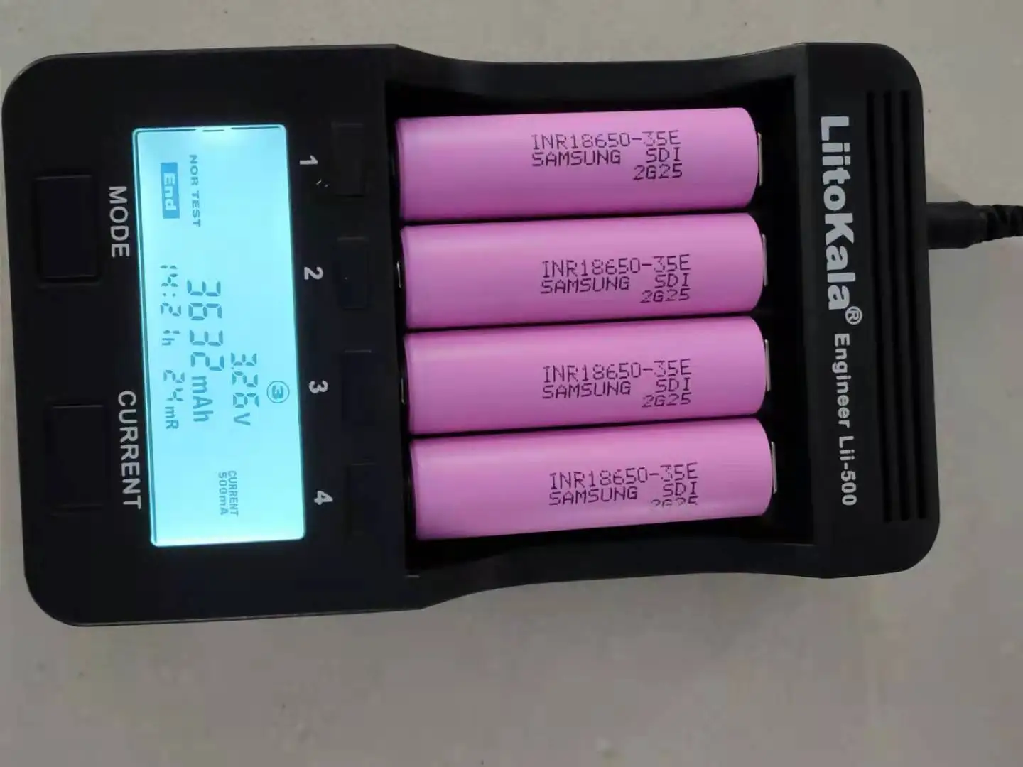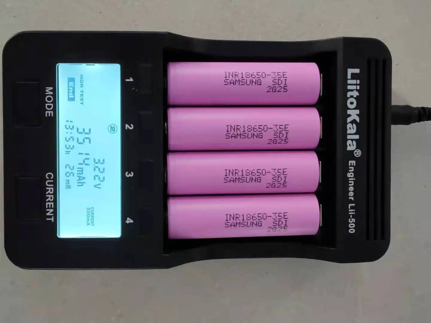 Фактическая емкость 18650-35e Описание товара:Тип батареи: INR18650-3500Номинальное напряжение: 3,7 VСтандартная емкость: 3500 мАчВнутреннее сопротивление батареи: <30 мОмМетод зарядки: 4,2 V постоянного тока постоянное напряжениеМаксимальный ток заряда: 1C (3500mA) Батарея Размер: 18,5*65,2 мм (диаметр * высота)Особенности:1. Высокая производительность, маленький размер, светильник вес.2. Напряжение разряда стабильное.3. Высокая скорость непрерывного разряда.4. Небольшое внутреннее сопротивление.5. Отсутствие загрязнения, длительный срок службы.Информация о продукте:Высококачественные литий-ионные аккумуляторы INR18650-35E* Модель: 18650* Номинальное напряжение: 3,6 V* Стандартная емкость: 3350-3550 мАч* Сделано в Корее* Максимальный устойчивый ток разряда: 20A3. Информация о ребенке:1. Стандартный ток разряда: 20AЗарядка: 1.25A, 4,20 V, CCCV 100mA отключение,Разряд: 0.2C, 2,5 V разрядный отсек2. Номинальное напряжение: 3,6 V3. Стандартная зарядка: CCCV, 1.25A, 4,20 ± 0,05 В, 100 мА отключение4. Быстрая зарядка: CCCV, 4A, 4,20 ± 0,05 В, 100 мА отключение5. Время зарядки:Стандартная зарядка: 180 мин/100 мА отключениеБыстрая зарядка: 60 мин (при 25 °C) / 100 мА отключение6. Максимальный устойчивый ток разряда: 20A (при 25 °C), 60% при 250 циклах7. Критическое разрядное напряжение: 2,5 V8. Вес ячейки: 46,0 г Макс.9. Размер ячейкиВысота: 64,85 ± 0,15 ммДиаметр: 18,33 ± 0,07 мм