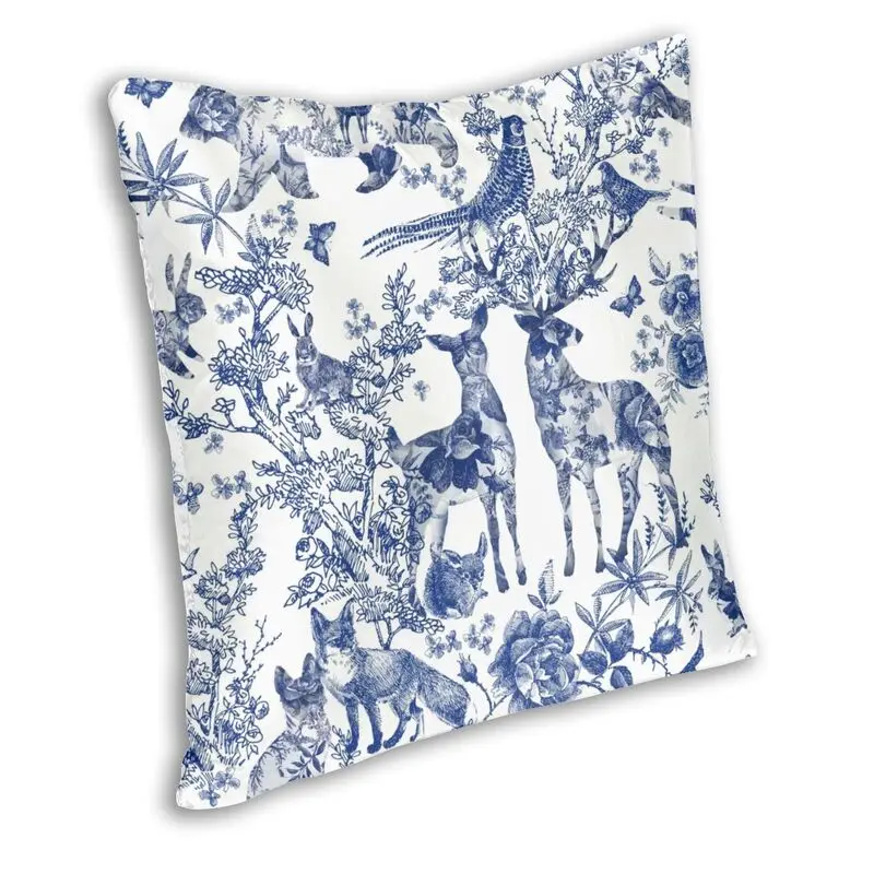 Винтажный французский тканевый Чехол на подушку 40x40 диван с цветочным и животным лесом Индиго современный Чехол на подушку мягкий Чехол на подушку