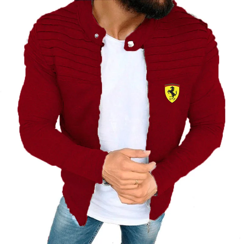 Новинка 2021, мужской модный кардиган Ferrari с логотипом автомобиля, уличный Кардиган со складками для спорта и отдыха