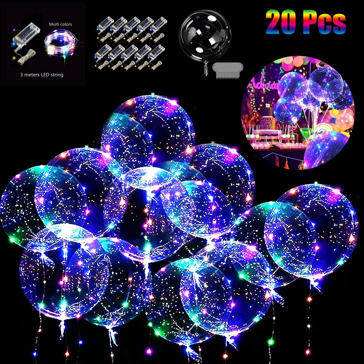 10/20 шт светящийся Bobo воздушный шар LED прозрачный надувной Гелиевый шар для рождества свадьбы дня рождения украшения принадлежности