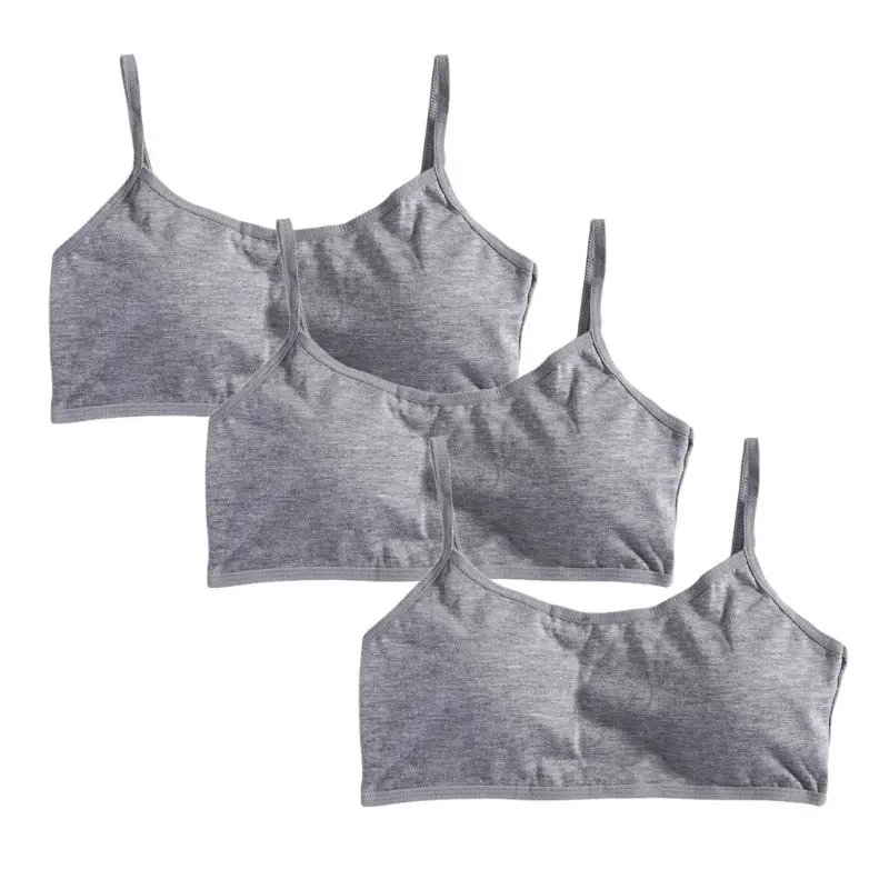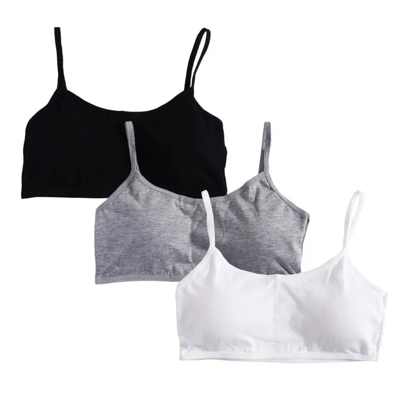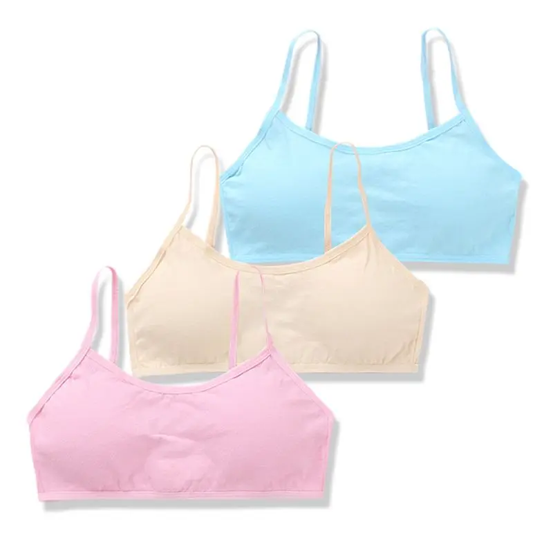 Однотонный мягкий хлопковый бюстгальтер для девочек 3 шт.лот, дышащее нижнее белье для подростков