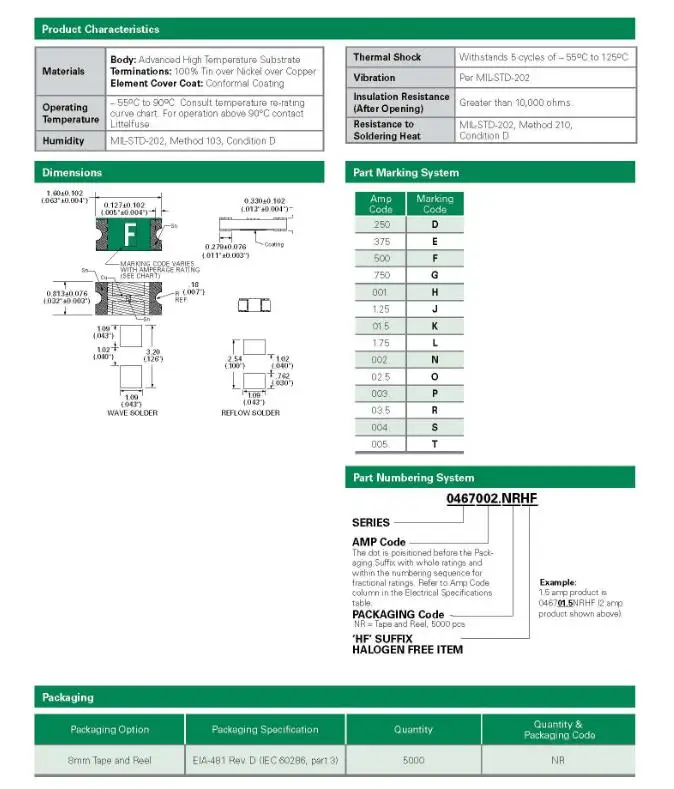 100 шт. x 0467 250mA 375mA 500mA 750mA 1A 1.5A 2A 2.5A 3A 4A 5A 32V SMT предохранители 0603 быстродействующий SMD предохранитель для Littelfuse