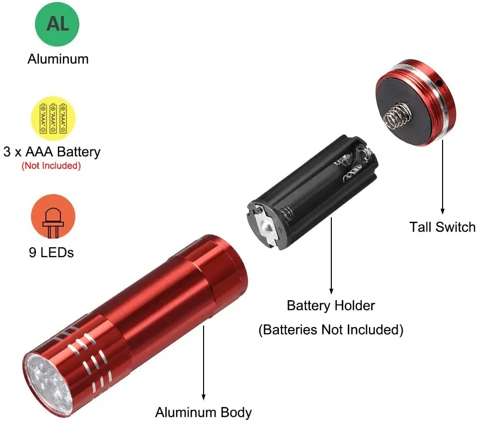 Номер модели9 LED Aluminum Flashlight Ultraviolet Blacklight Torch