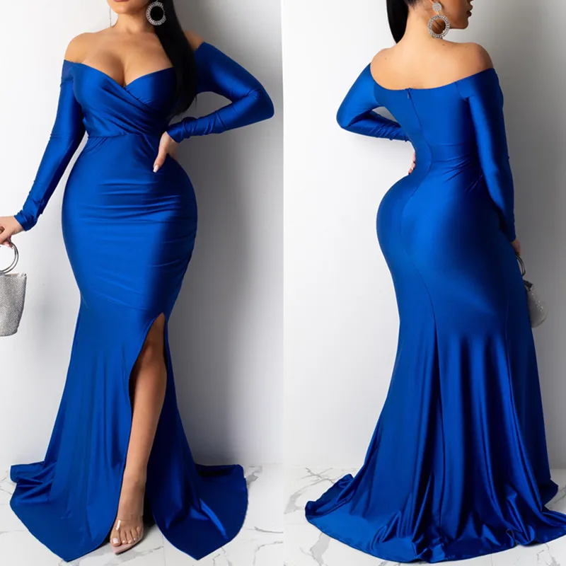 Соблазнительное Атласное Платье макси с одним открытым плечом, женское вечернее платье с лентой, длинное платье с драпировкой Королевского синего и зеленого цветов, 2021