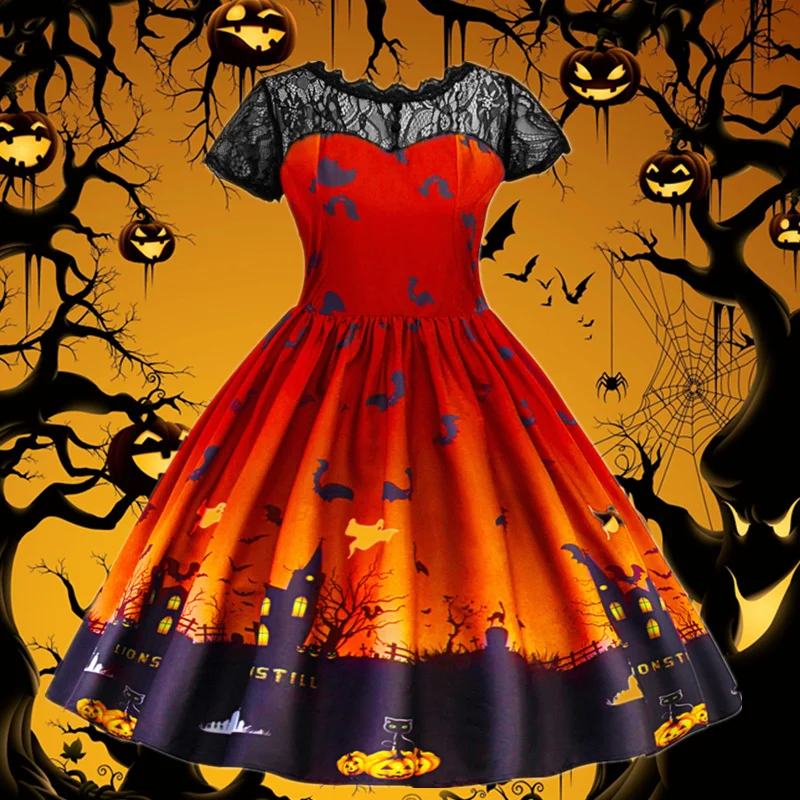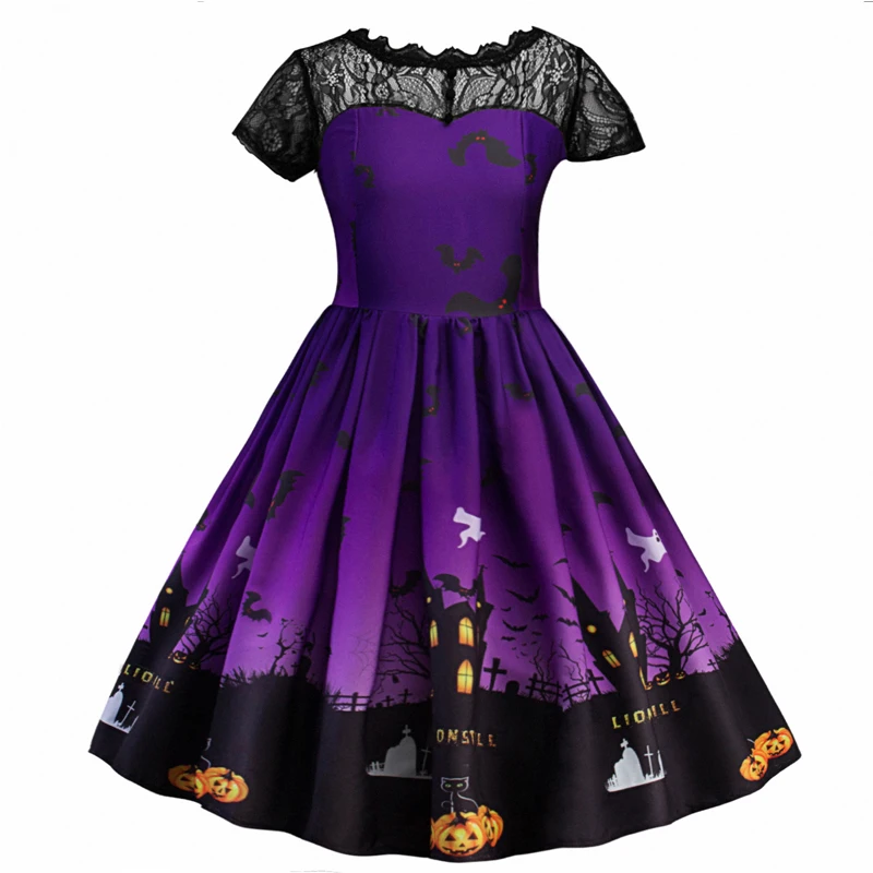 Новинка 2021, платье для девочек с рисунком на Хэллоуин, повседневн...
