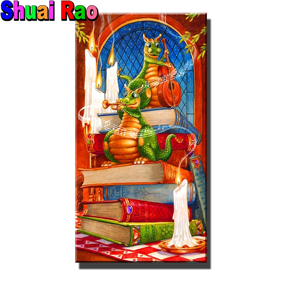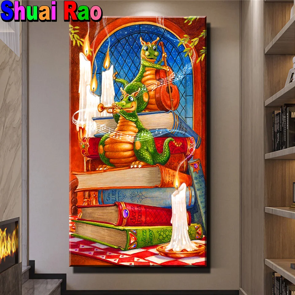 Забавный рисунок дракона, домашнее искусство, 5D Сделай Сам, полная круглая Алмазная картина "книги для чтения динозавров", набор мозаики, стразы, дрель из смолы