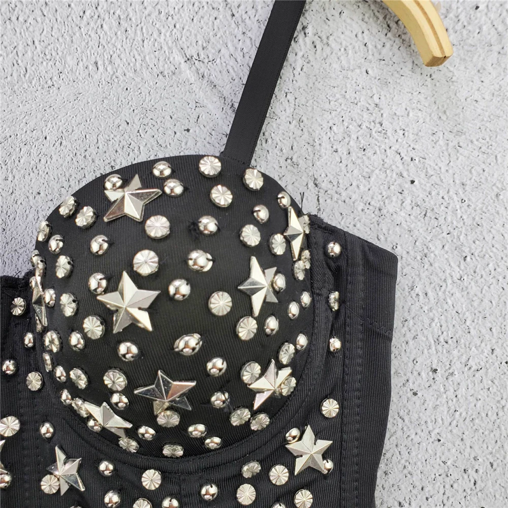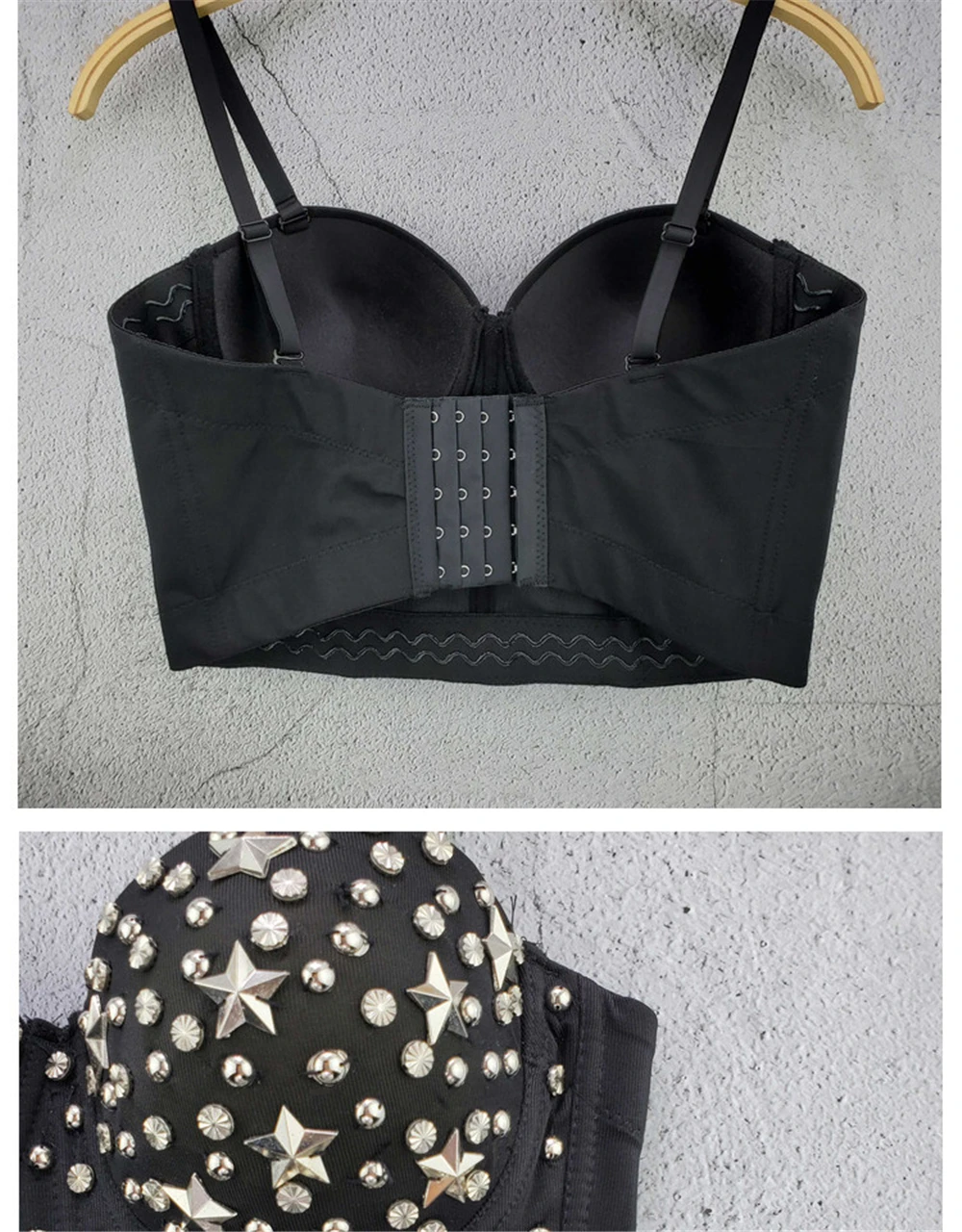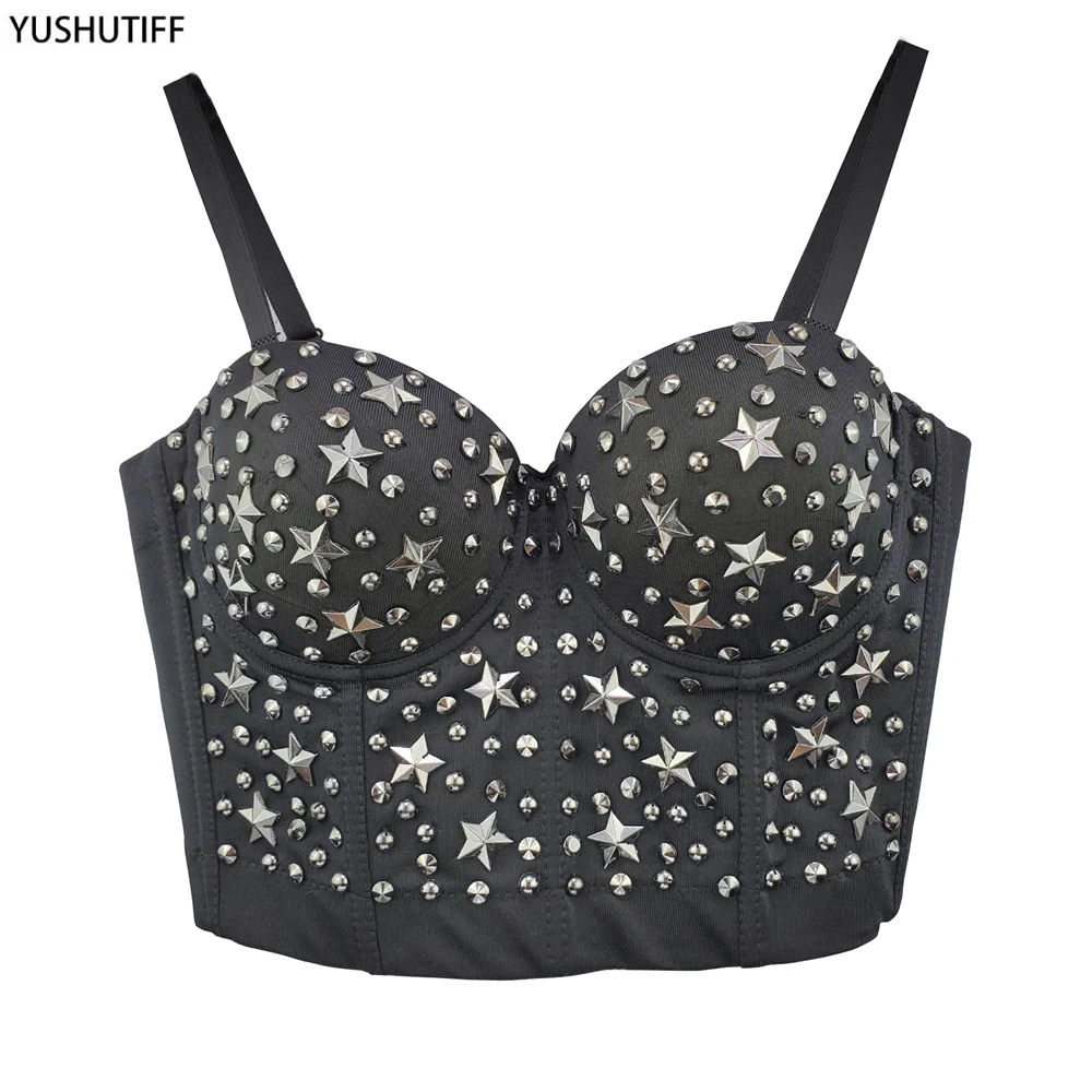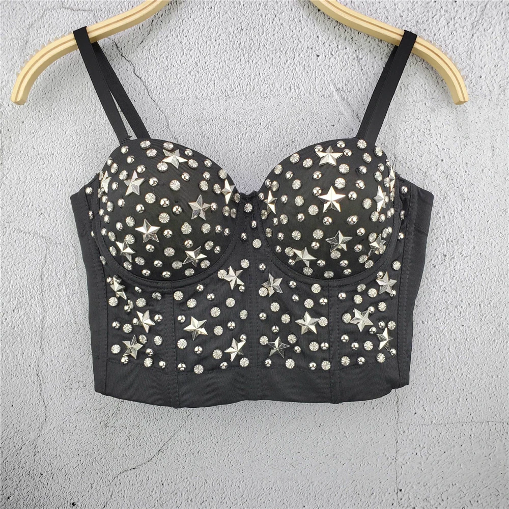 Женский укороченный топ с чашками пуш-ап, с заклепками
