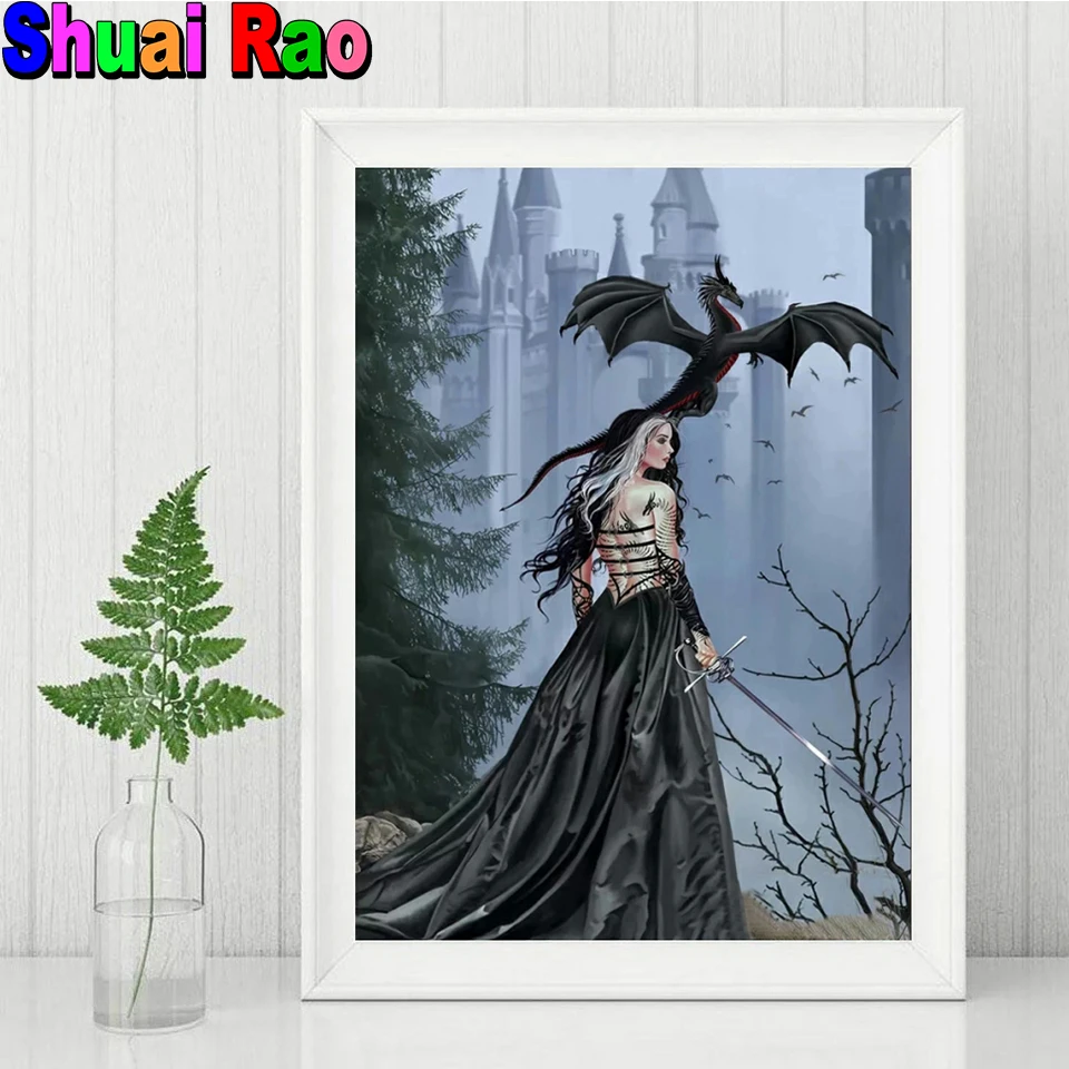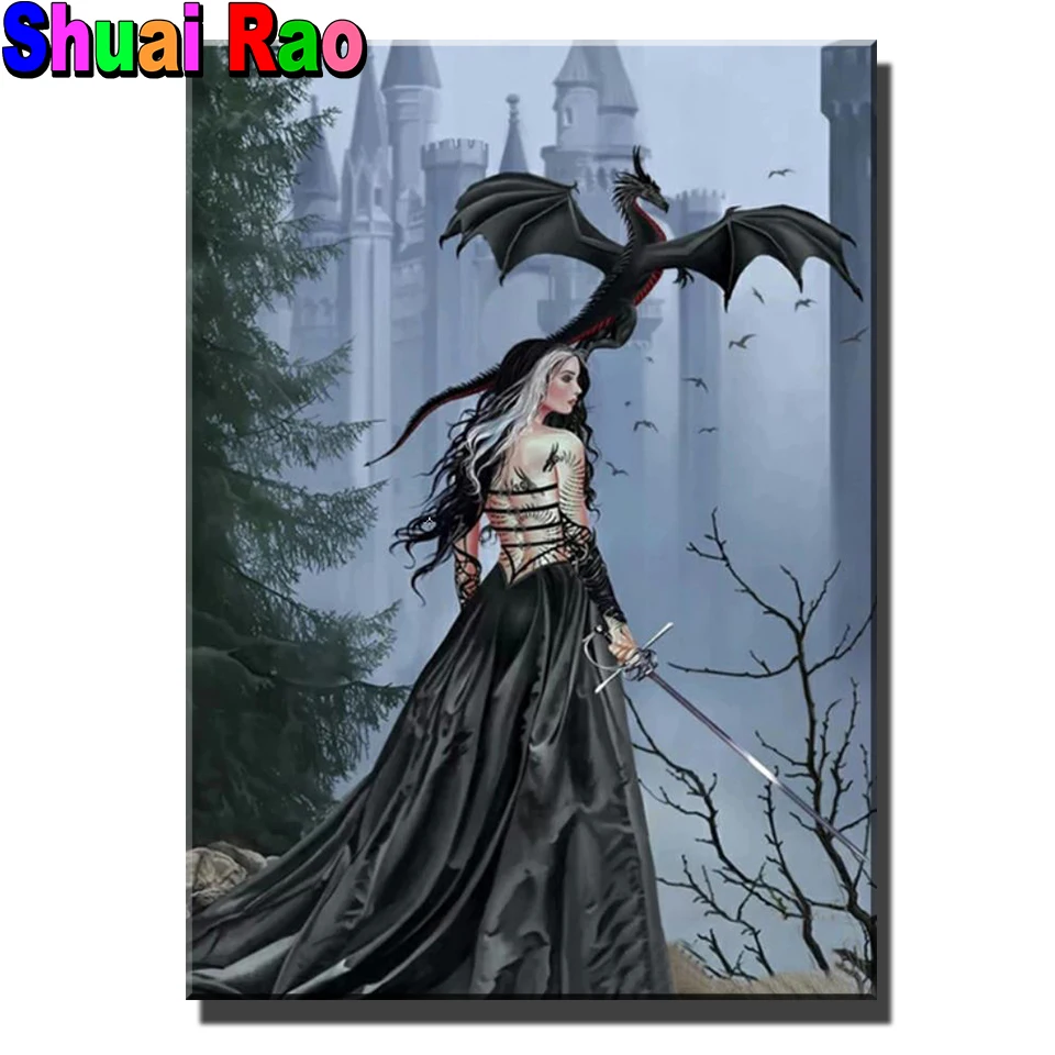 Тьма дракон и готика женщина Сделай Сам 5D алмазная картина Стразы Вышивка крестиком головоломка дрель вышивка Настенная живопись