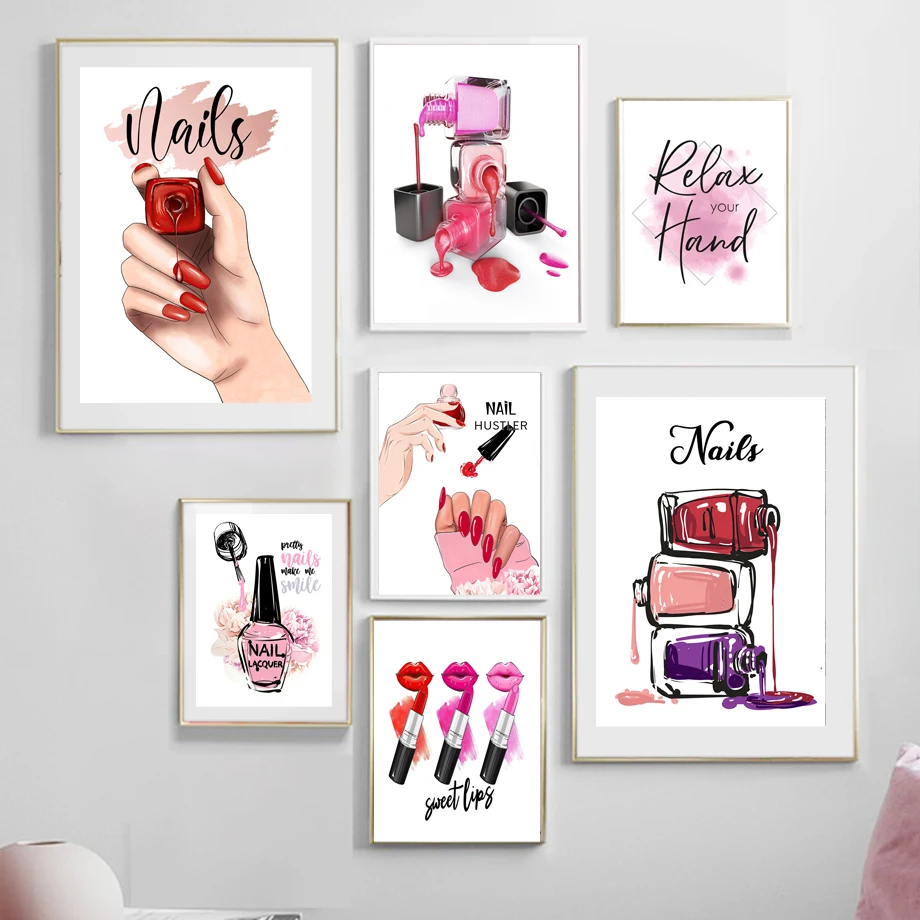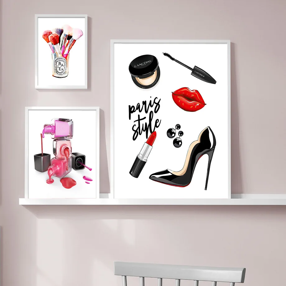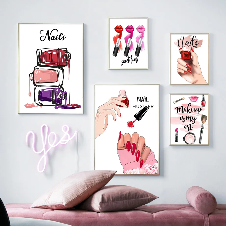 Ресницы, лак для ногтей, салонная помада, настенное искусство, холс...