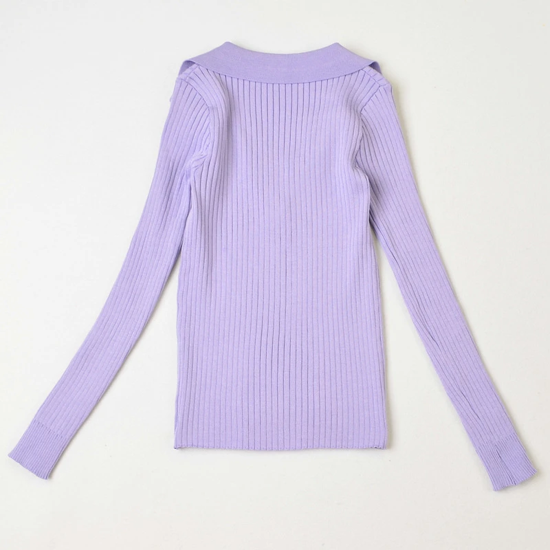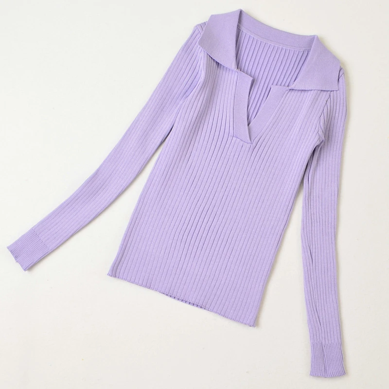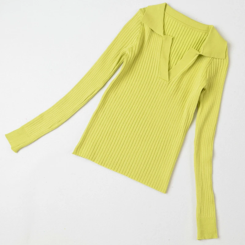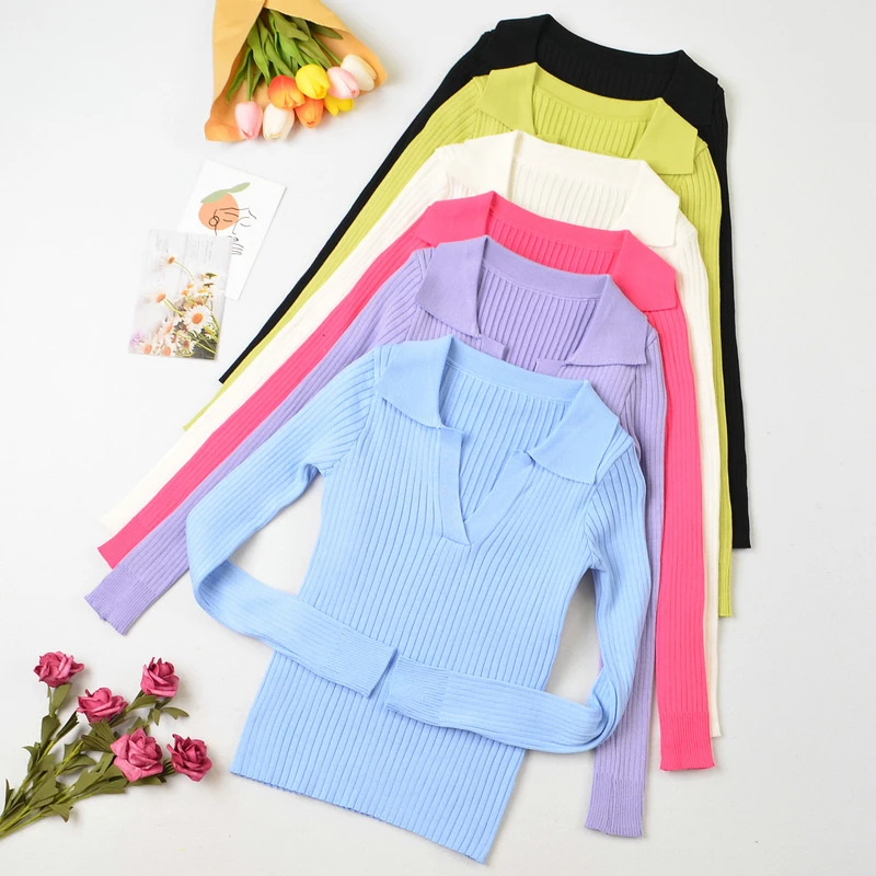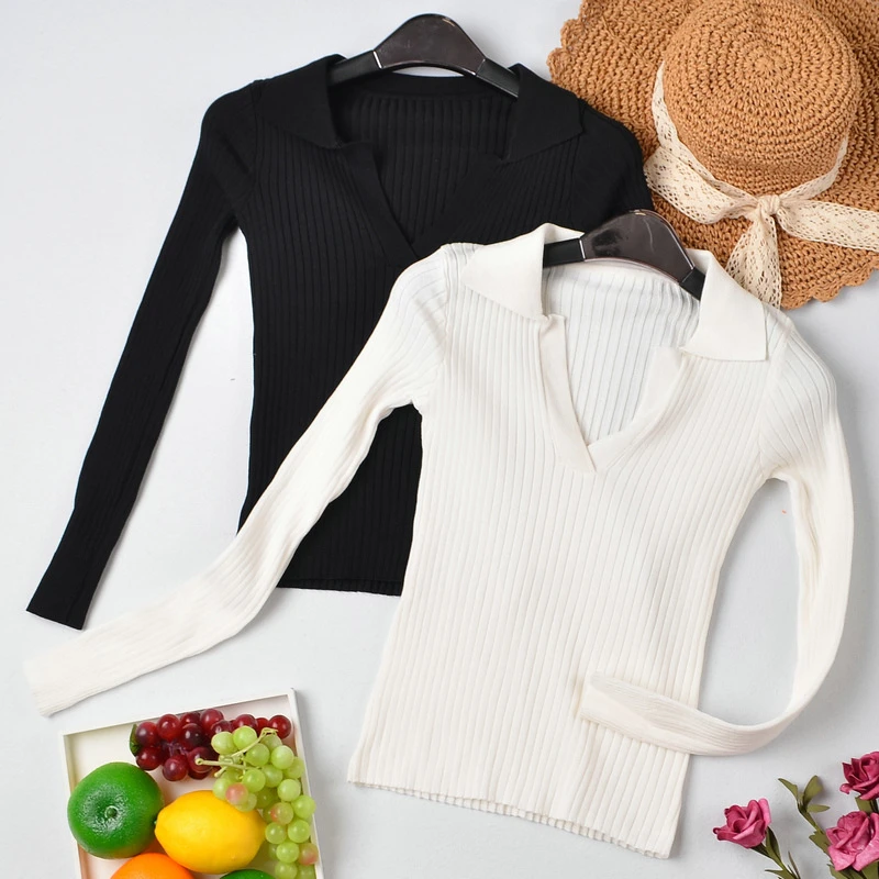 Женская трикотажная рубашка с лацканами, осенняя однотонная Облегающая рубашка-поло с длинным рукавом, эластичный Топ, Женский пуловер, облегающая Базовая рубашка