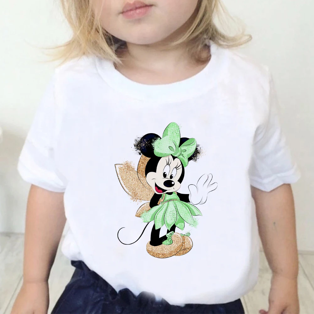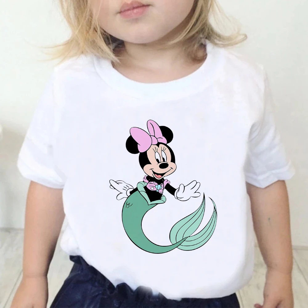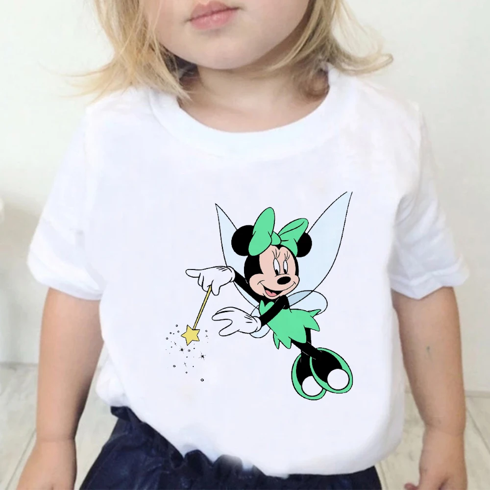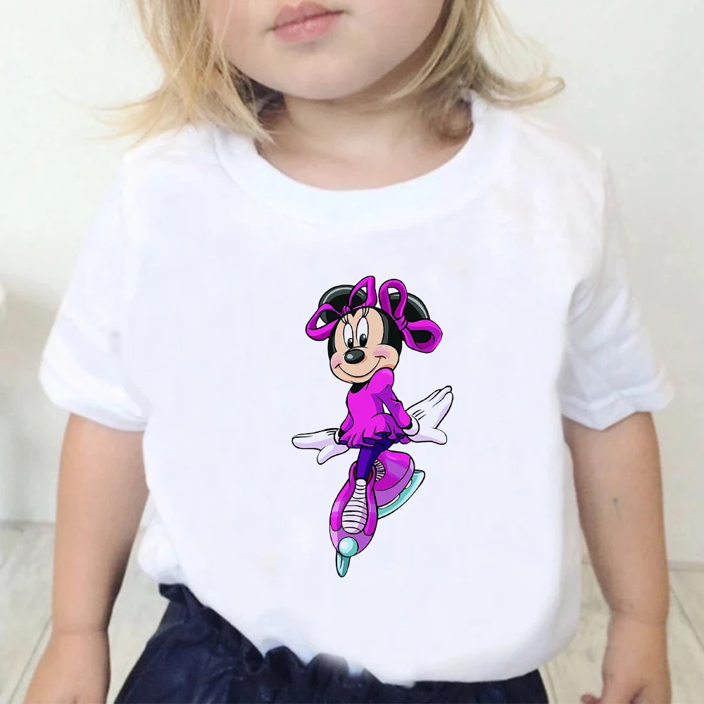 Детские футболки Disney, футболки с принтом Минни Маус, повседневные уличные футболки в стиле Харадзюку, детский топ, удобная одежда, футболка