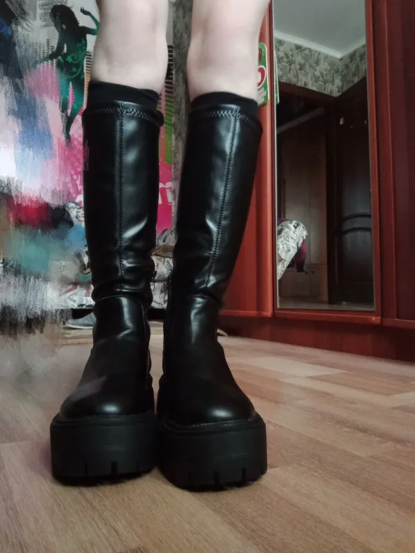 Хорошие сапоги, маломер на 1-2 размера, голенище на тонкую ногу.