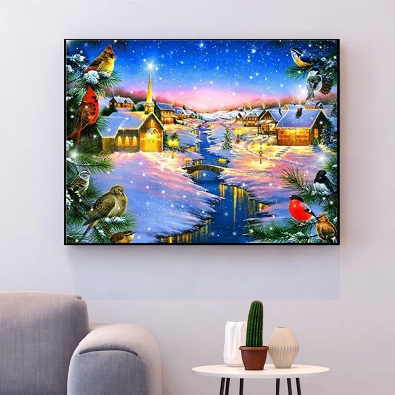 Алмазная мозаика снежное дерево, картина сделай сам с полными квадр...
