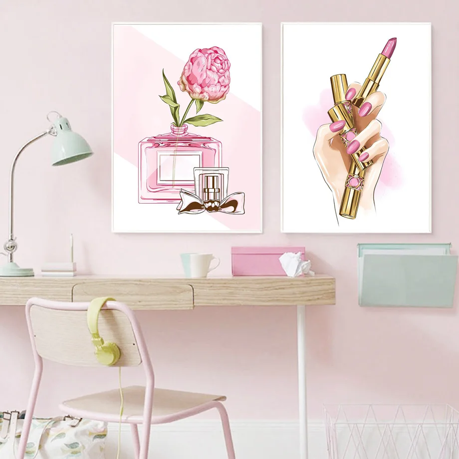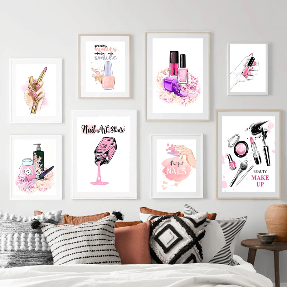 Ресницы, лак для ногтей, салонная помада, настенное искусство, холс...