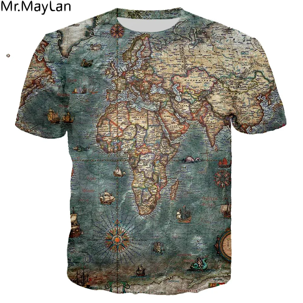 Футболка мужская с 3D-принтом тигра, забавная рубашка с коротким рукавом, уличная одежда в стиле хип-хоп, с картой мира для мужчин и женщин, рубашка в стиле Харадзюку