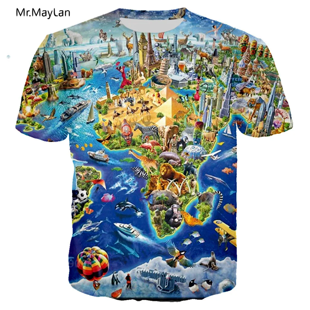 Футболка унисекс с забавным 3D принтом карты мира и животных, крута...