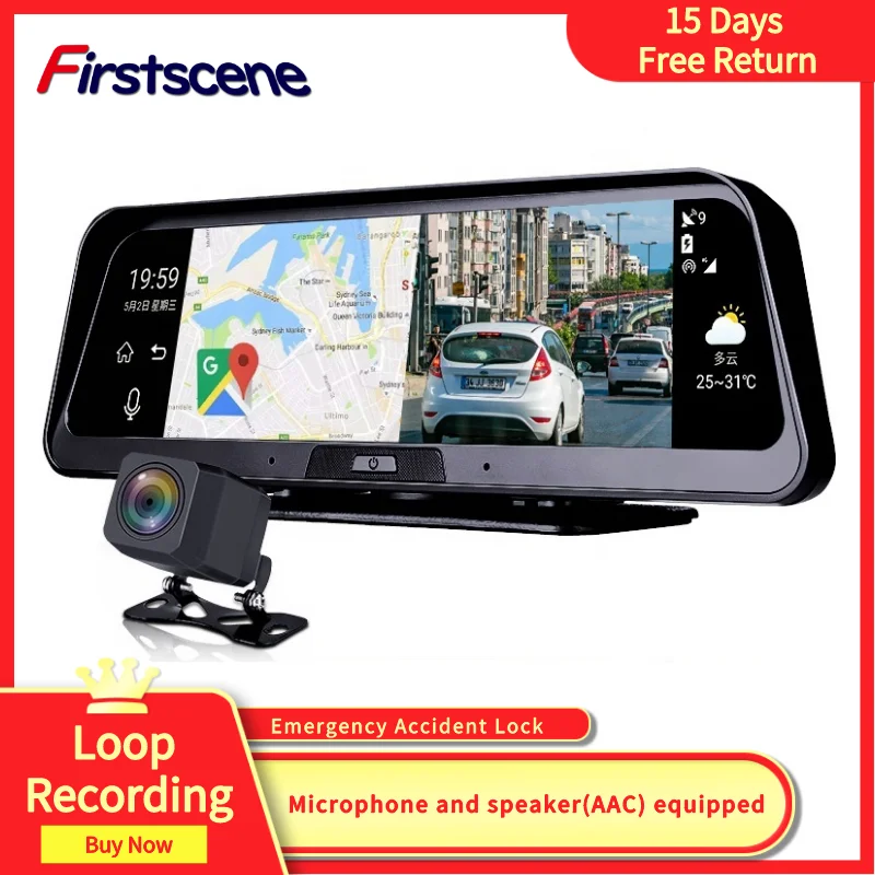 Умный Автомобильный видеорегистратор Firstscene, 10 дюймов, IPS, 4G...