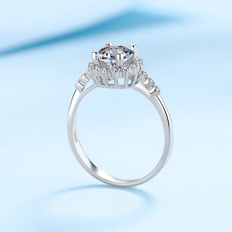 Женское кольцо из серебра 925 пробы с бриллиантами morsonite в 1 карат, Платиновое pt950