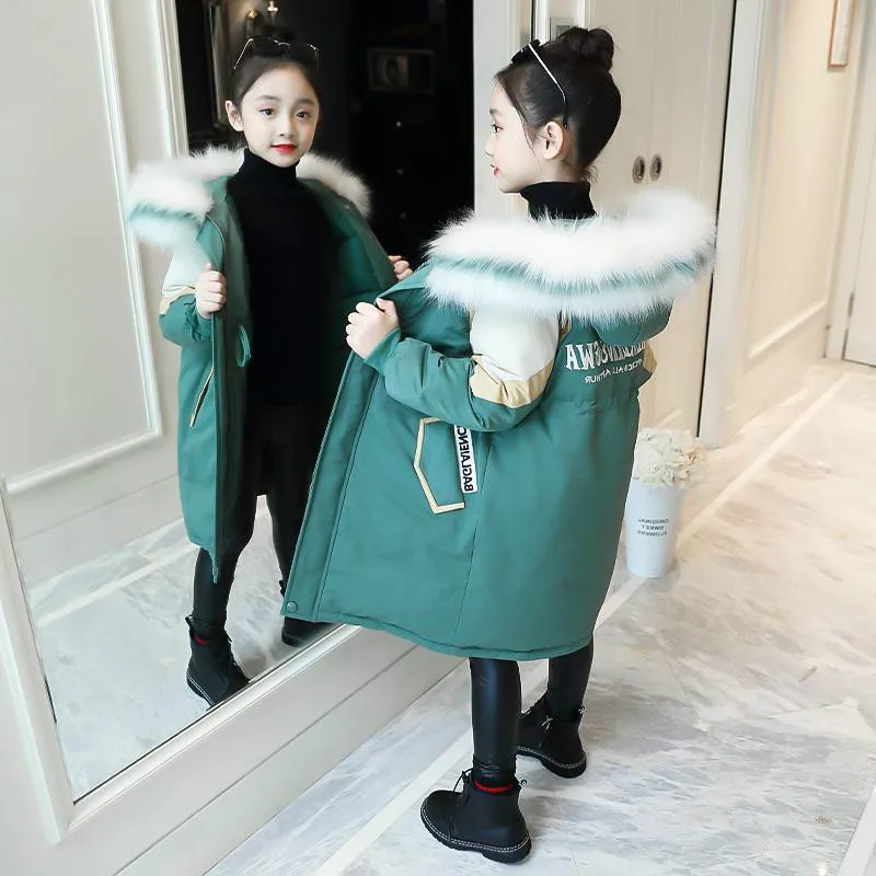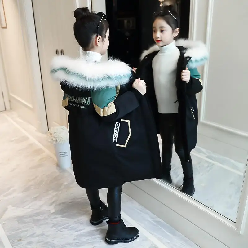 Зимняя хлопковая куртка для девочек, новинка 2021, детская модная утепленная верхняя одежда, одежда для девочек, пальто, зимняя одежда для детей от 4 до 15 лет