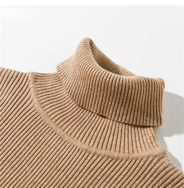 Вязаный свитер, Женский плотный теплый свитер с высоким воротником и длинным рукавом, приталенный свитер, женские винтажные элегантные свитера, шикарные женские свитера