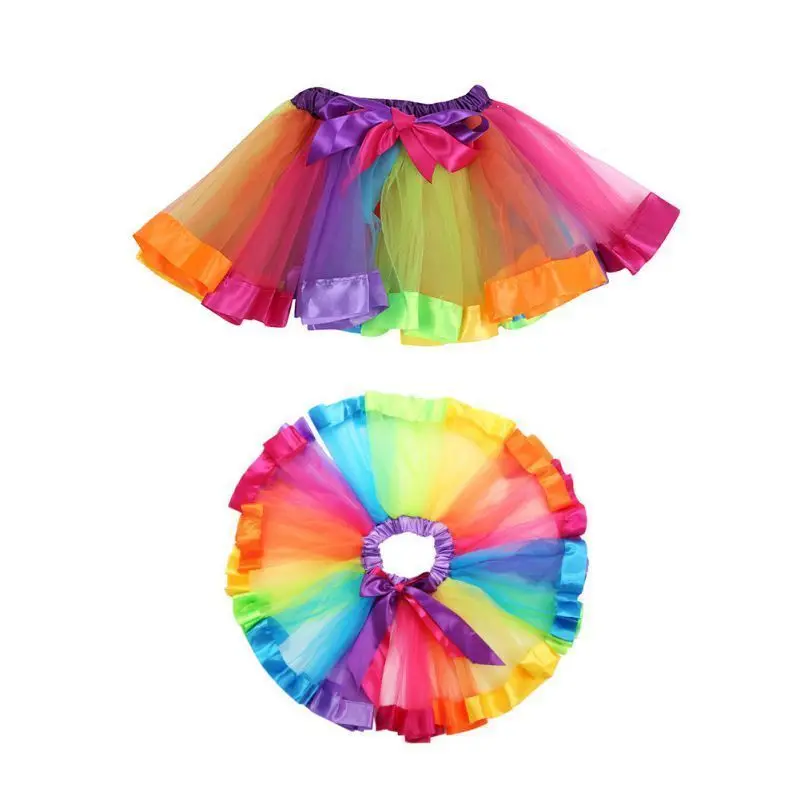 Детская одежда, юбка-пачка для маленьких девочек, сетчатая многослойная юбка радужной расцветки с эластичным поясом, наряд, Короткие свободные летние юбки