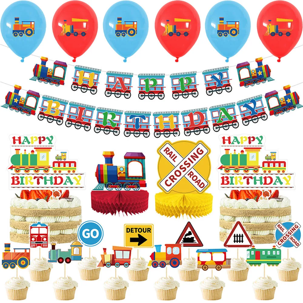 Железнодорожный поезд с надписью, тянущийся флаг, вставка для торта, тянущийся флаг, поезда, сотовый шар, детвечерние НКА, товары для украшения дома