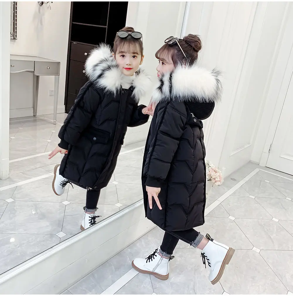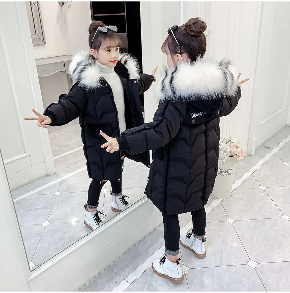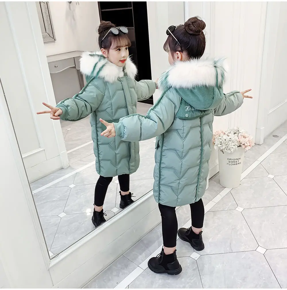 Новинка 2021, зимняя куртка для девочек, утепленное пальто, детская одежда с хлопковой подкладкой, утепленная парка длиной, пальто, верхняя одежда из искусственного меха для детей