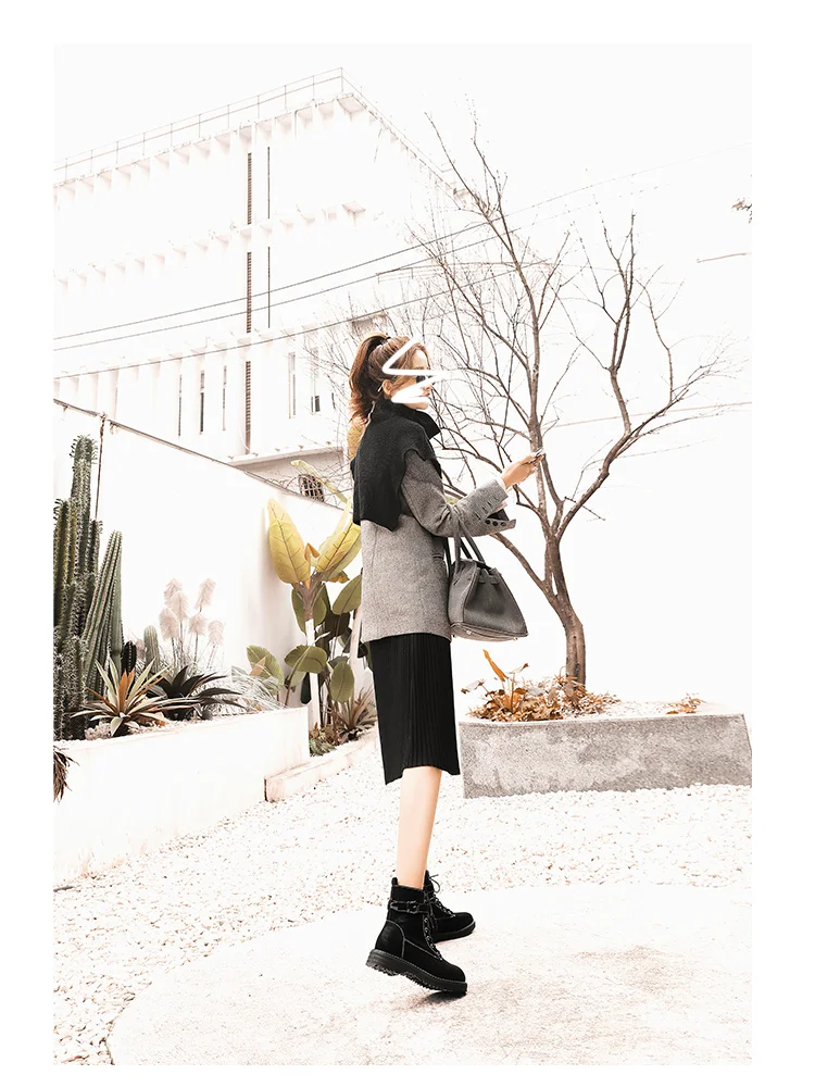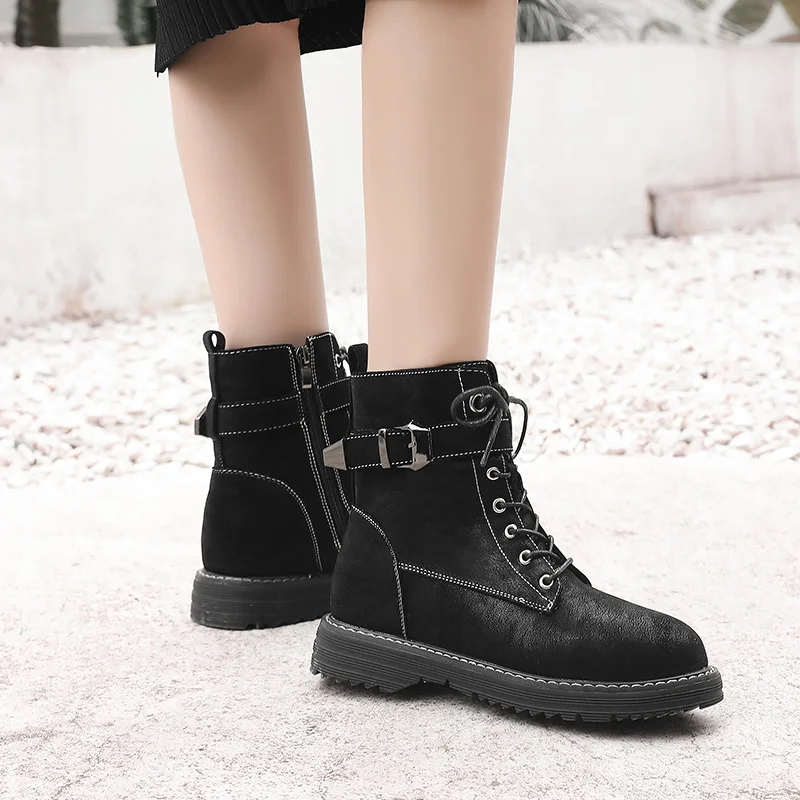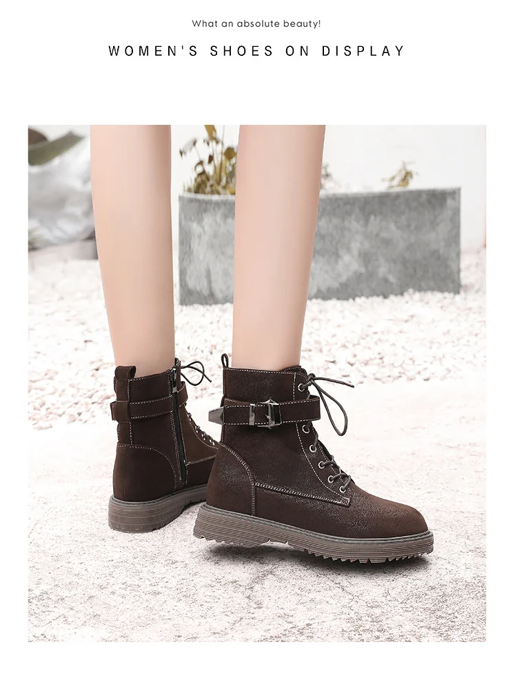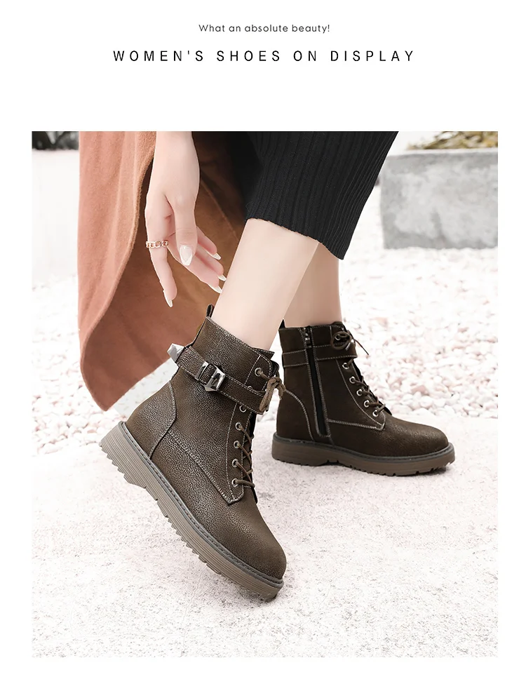 Женские ботинки на платформе; Коллекция 2021 года; Сезон Зима; Короткие плюшевые теплые ботинки на шнуровке с круглым носком; Botas Mujer; Не сужающийся книзу массивный каблук; Женская обувь; Распродажа