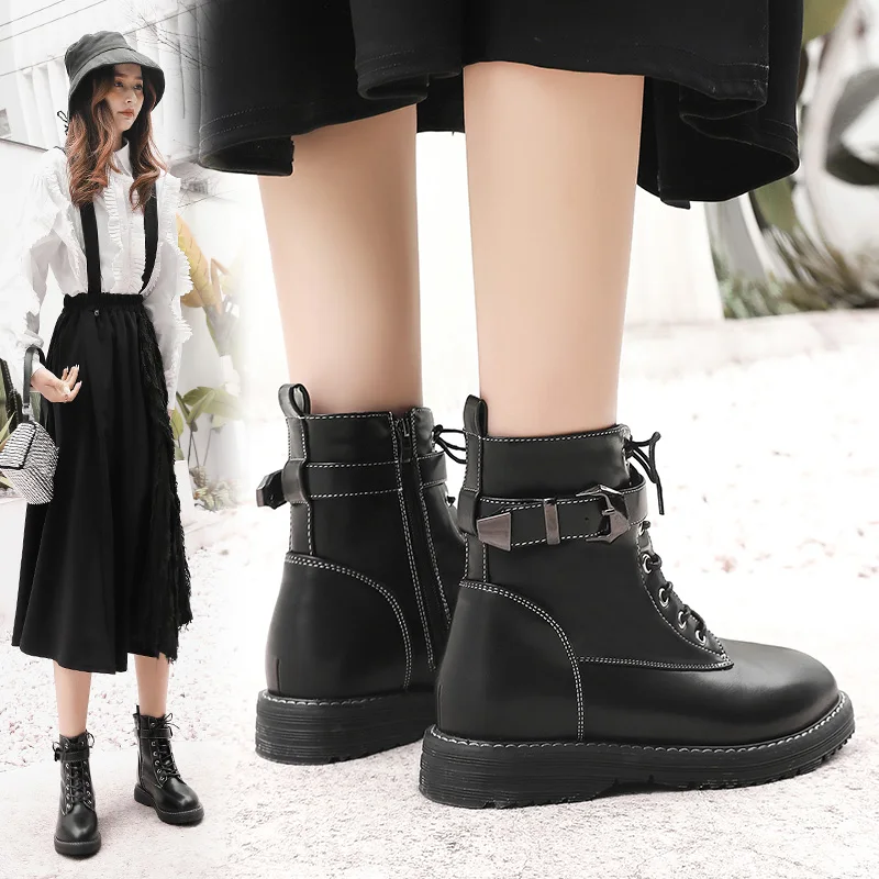 Модные черные ботинки на платформе; Женские ботинки в стиле панк; С...